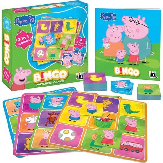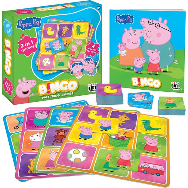 Cieszcie się rodzinną zabawą z ulubionymi bohaterami ze Świnki Peppy. Ta dziecięca wersja bingo została zaprojektowana tak, aby była łatwa do zrozumienia, szybka i pełna radości z odkrywania. Dzięki trzem sposobom gry dzieci się nie nudzą i mogą ćwiczyć koncentrację, dostrzeganie detali oraz strategię.