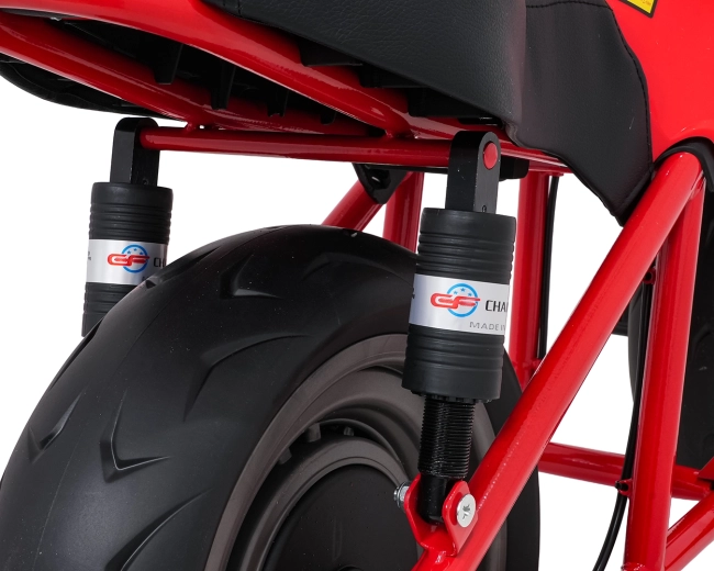 Wydajny napęd 300W z płynnym ruszaniem i jazdą do przodu zapewnia pewność i komfort. Akumulator 24V 9Ah dostarcza energii na dłuższą zabawę.