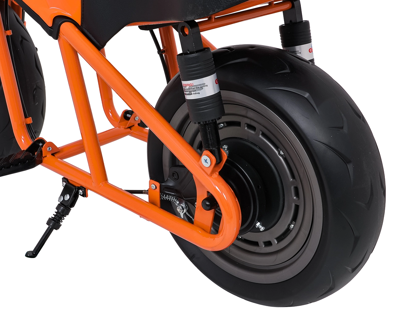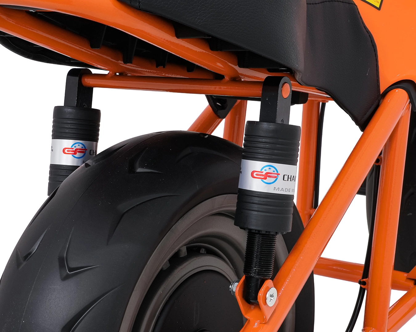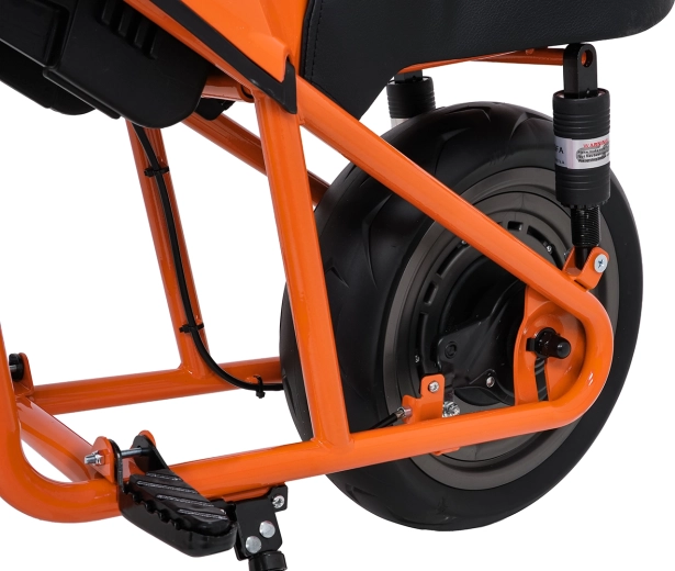 Dwie tylne jednostki sprężynujące skutecznie pochłaniają nierówności i umożliwiają regulację twardości dla wygodnej i stabilnej jazdy.