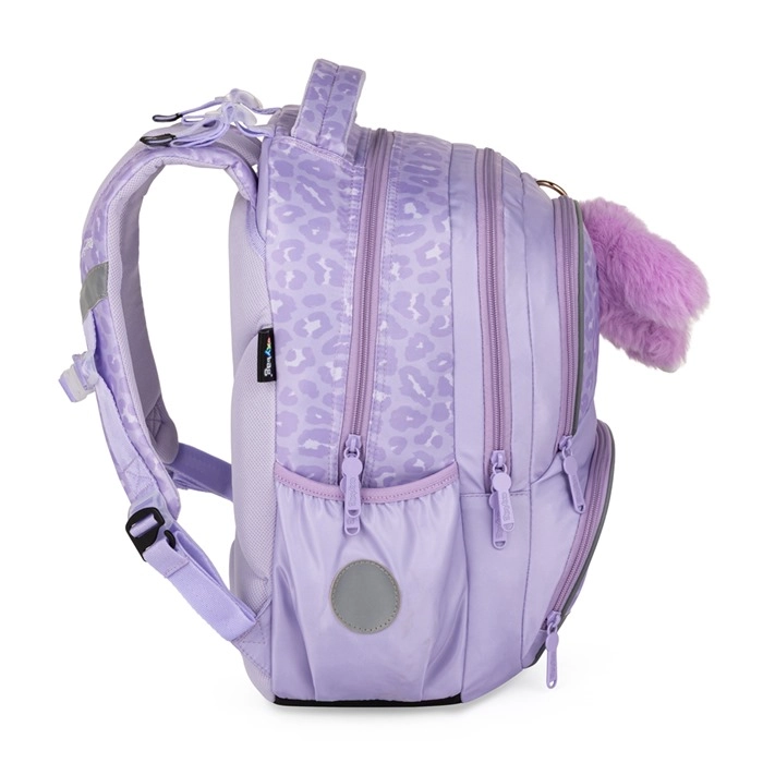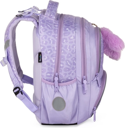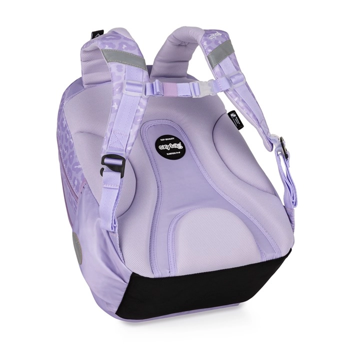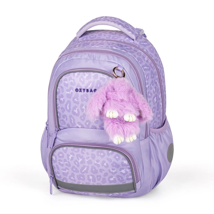 Praktyczny trzyczęściowy zestaw szkolny OXY NEXT Bunny w delikatnym lawendowym kolorze łączy pojemny plecak, duży piórnik i lekki worek na strój gimnastyczny. Plecak ma anatomicznie ukształtowane plecy, wyściełane szelki oraz pas piersiowy dla wygodnego i zdrowego noszenia. Oferuje wiele kieszeni i organizer, boczne kieszenie na butelkę, uchwyt na klucze/chip oraz elementy odblaskowe dla bezpieczeństwa. Wzmocnione wodoodporne dno chroni zawartość nawet w niesprzyjającej pogodzie.