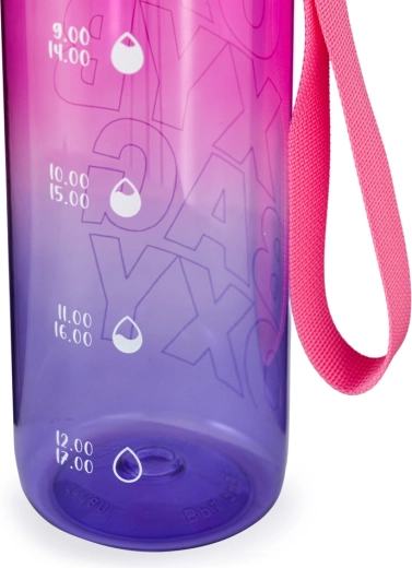 Stylowa butelka z tritanu OXY Life o pojemności 800 ml w odcieniach ombre różu i fuksji jest idealna do codziennego nawadniania. Oferuje znaczniki czasowe picia, bezpieczną, zamykaną pokrywkę z mechanizmem flip-top oraz praktyczną pętlę do wygodnego noszenia. Jest lekka, wytrzymała i nadaje się do mycia w zmywarce do 80 °C.