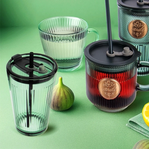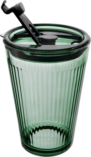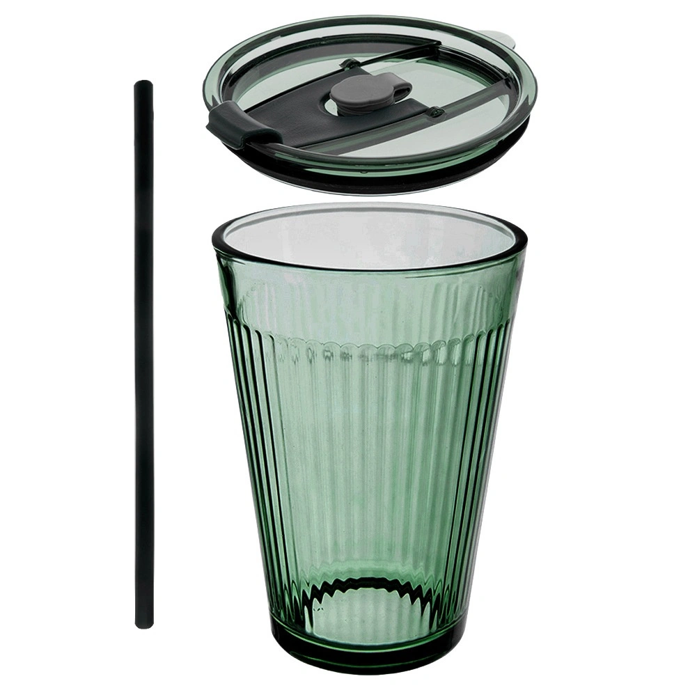 Ciesz się ulubioną kawą, herbatą lub lemoniadą w dobrym stylu. Szklany kubek VERDE w eleganckim zielonym wydaniu oferuje całkowitą pojemność 450 ml (przy użyciu z pokrywką i słomką ok. 400 ml). Ryflowane szkło zapewnia wygodne i bezpieczne trzymanie, a uszczelniająca pokrywka ogranicza niechciane rozlewanie.