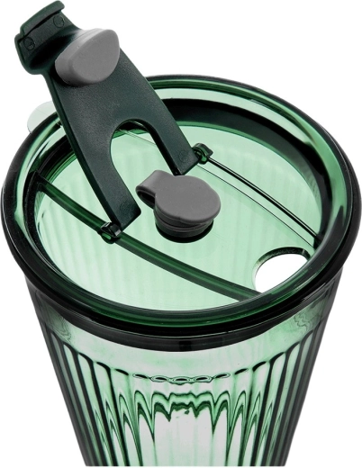 Kubek to świetny wybór do domu, biura i na taras. Silikonowa słomka jest przyjemna w piciu, a otwór w pokrywce można pewnie zamknąć, gdy jej akurat nie używasz. Cały zestaw łatwo się czyści i jest odpowiedni do zmywarki.