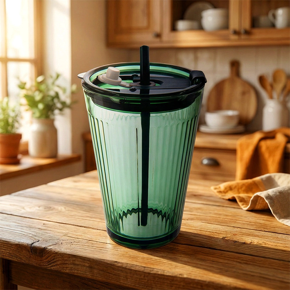 Pokrywka z uszczelką pomaga ograniczyć rozlewanie i ma zamykany otwór na słomkę. Silikonowa słomka jest przyjemna, wielorazowa i łatwa w czyszczeniu.