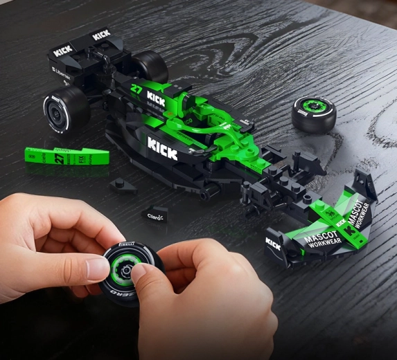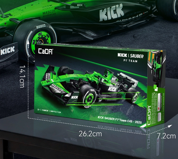 Ciesz się precyzyjną budową i wyścigową atmosferą z modelem KICK SAUBER F1 C45. Eleganckie czarno‑zielone malowanie, aerodynamiczne skrzydła i autentyczne nadruki tworzą imponującą replikę nowoczesnego bolidu. Dzięki działającym kołom model łatwo porusza się po równej powierzchni, dlatego świetnie sprawdzi się zarówno do zabawy, jak i do gabloty.