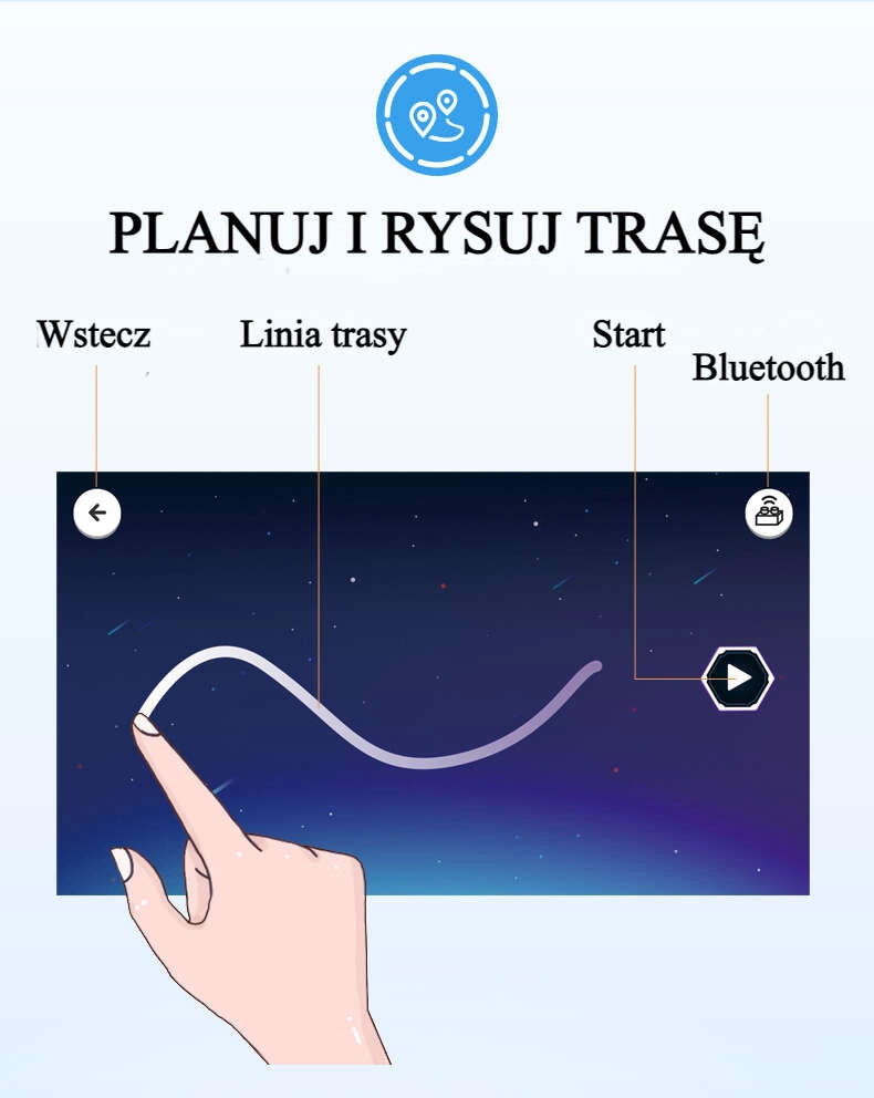 - Realistyczne prowadzenie: jazda do przodu/tyłu, skręcanie, prędkość do 3,8 km/h, stabilny zasięg ponad 20 m.