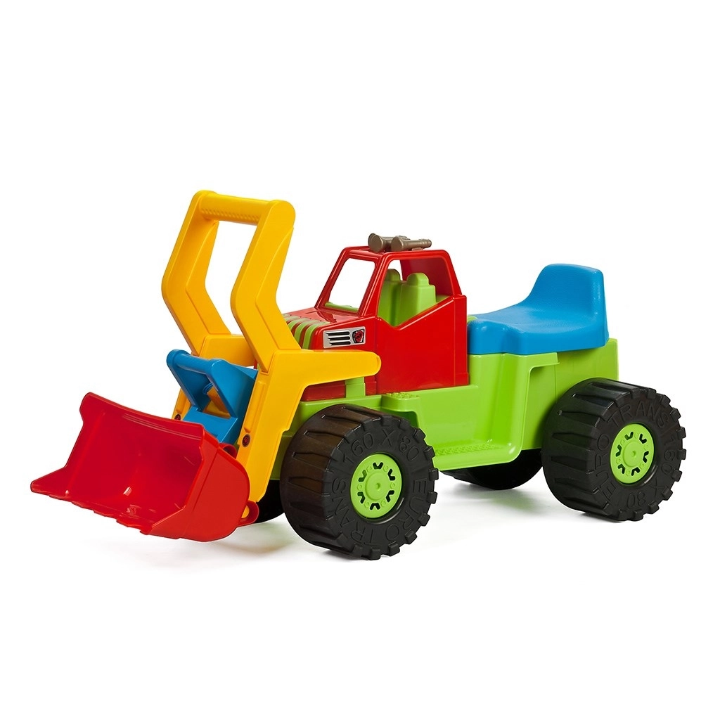 Mechanicznie sterowana łyżka pozwala dzieciom nabierać piasek i zabawki, załadowywać i wysypywać jak na prawdziwym placu budowy.