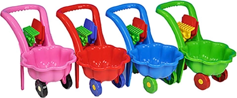 - Kompletny zestaw – taczka, łopatka i grabki dla jeszcze większej frajdy.