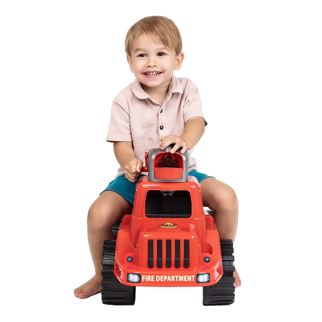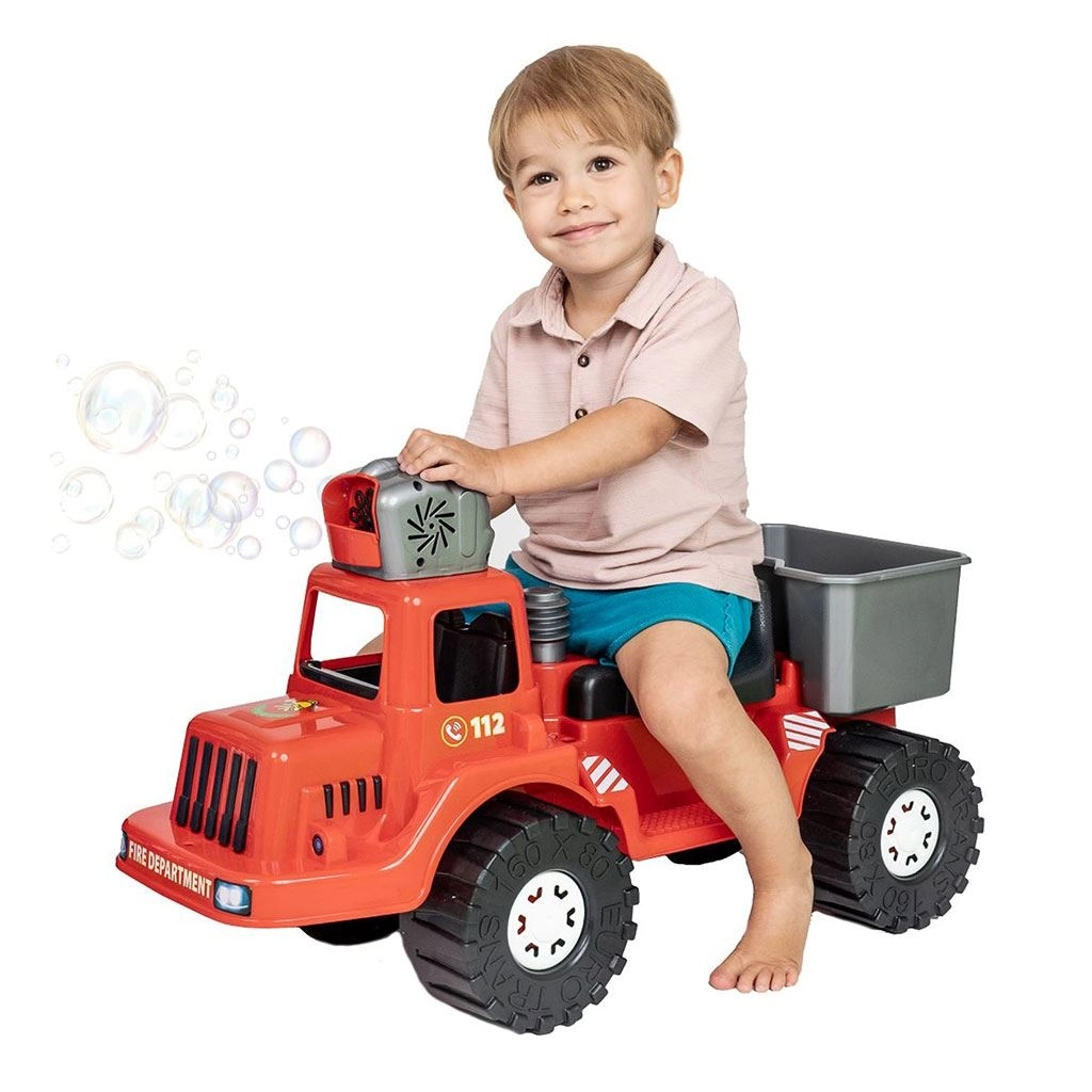 Podaruj dzieciom świetną jazdę i morze baniek! Strażacki jeździk BAYO łączy ruchową zabawę z magią wytwornicy baniek umieszczonej na kabinie. Po wlaniu płynu mydlanego i zakręceniu korbką jeździk zacznie wypuszczać mnóstwo banieczek, zmieniając każde popołudnie w radosną przygodę.