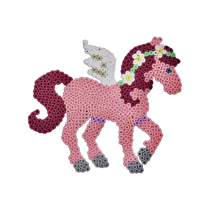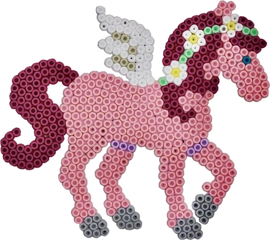 Ten kreatywny zestaw zapewnia dzieciom godziny zabawy, a jednocześnie wspiera ich umiejętności. Dzięki prostemu zasadzeniu układania koralików na podkładce i następnemu zaprasowaniu dzieci mogą tworzyć własne kolorowe motywy magicznych koników i innych kształtów.