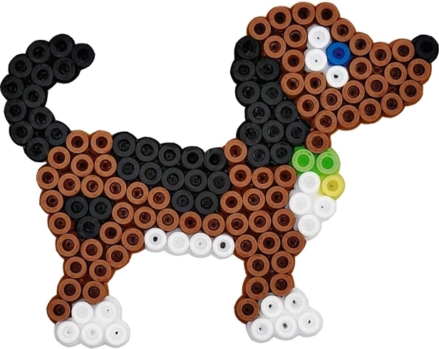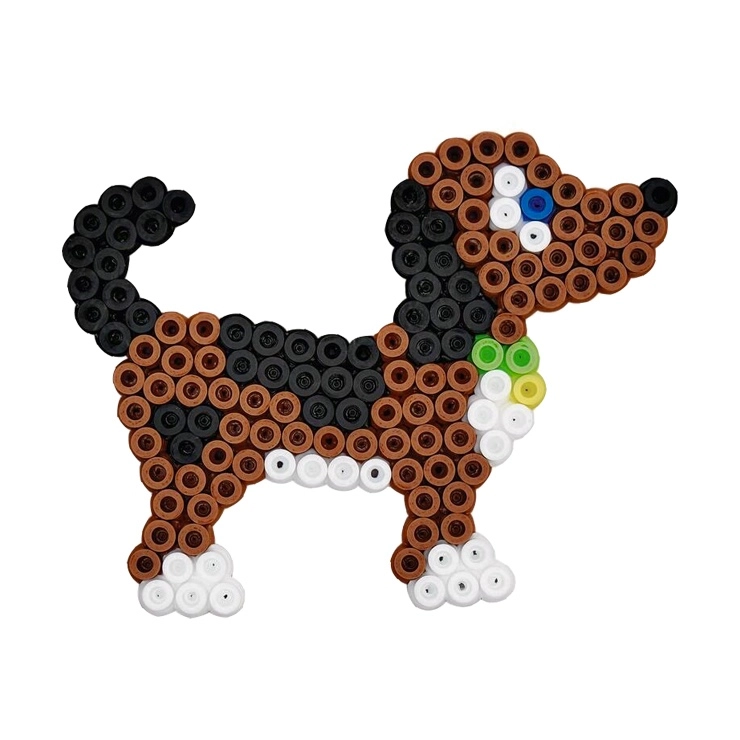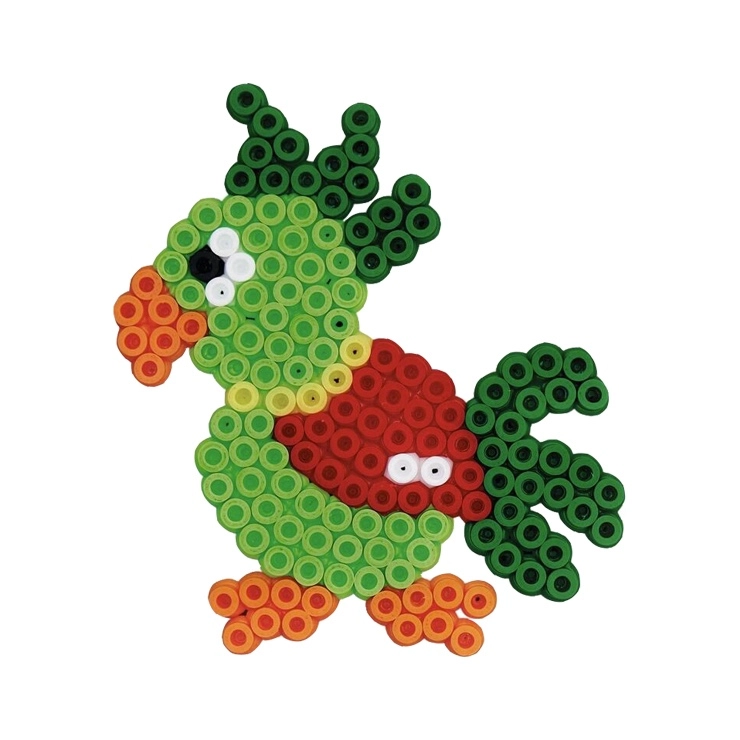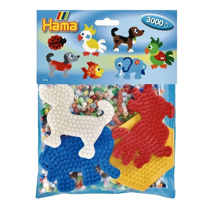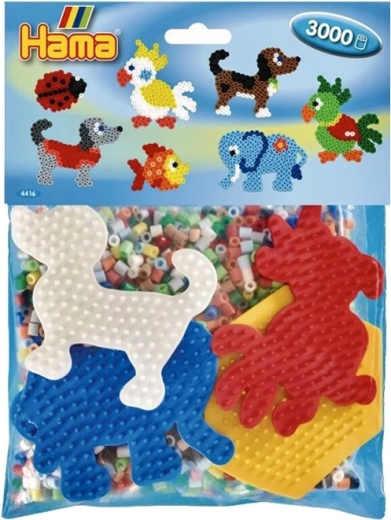 - 3000 szt. prasowanych koralików, 4 podkładki (mały sześciokąt, słoń, papuga, piesek), kolorowy szablon, papier do prasowania, instrukcja