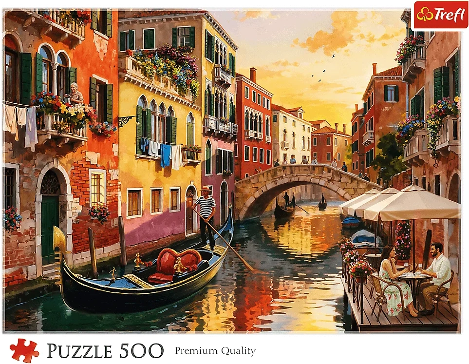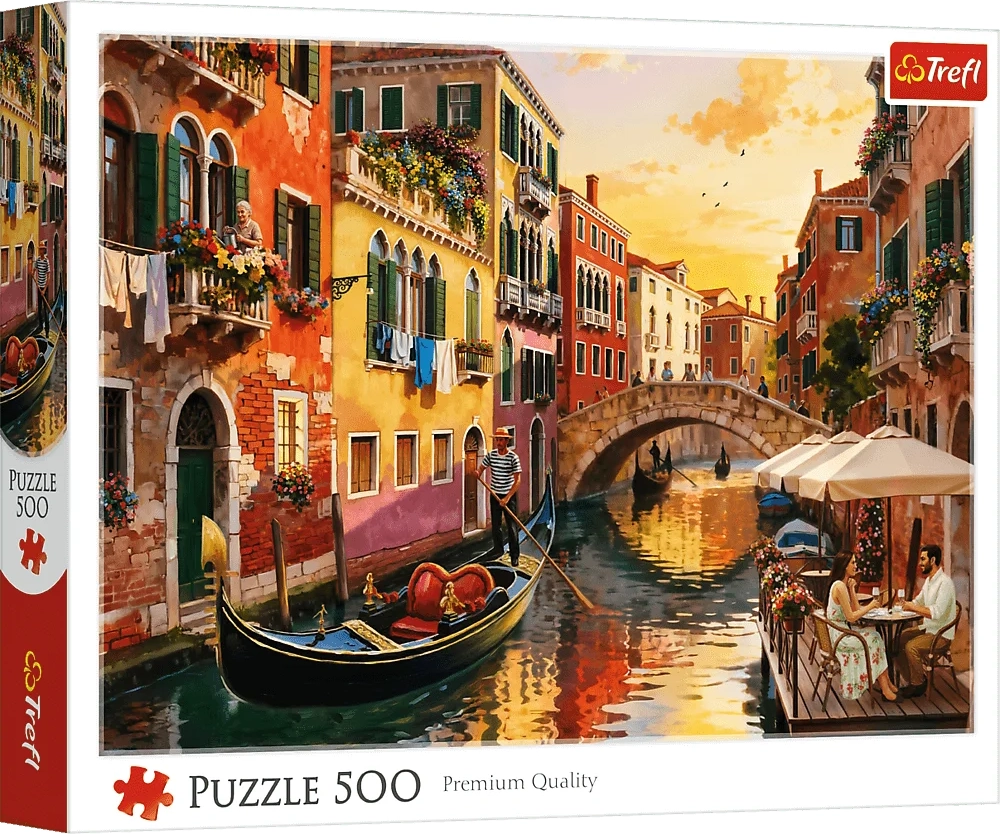 Ciesz się chwilą spokoju z puzzlami TREFL z romantycznym motywem Wenecji. Dzięki 500 elementom są idealne zarówno dla początkujących, jak i zaawansowanych miłośników układanek, którzy szukają wysokiej jakości wykonania i intensywnych kolorów dla maksymalnej przyjemności z każdego elementu.