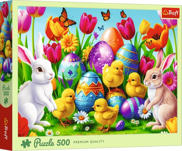 Odkryj urok wiosny z puzzlami TREFL „Wielkanocna łąka”. Dzięki 500 precyzyjnie wyciętym elementom czeka Cię wciągająca układanka, która ucieszy początkujących i zaawansowanych. Kompaktowy wymiar po ułożeniu ok. 48 × 34 cm pasuje zarówno na stół, jak i do ramki.