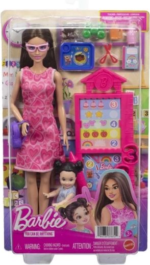 Odkryj świat nauki z zestawem do zabawy Barbie Nauczycielka, który pozwala dzieciom rozwijać wyobraźnię, odgrywanie ról i naukę poprzez zabawę. Zestaw zawiera lalkę Barbie, małego ucznia oraz liczne szkolne akcesoria, takie jak tablica z przekładanymi kartami, krzesełko, plecak i przybory plastyczne. Świetny wybór do zabawy w klasę i tworzenia pełnych kreatywności historii.