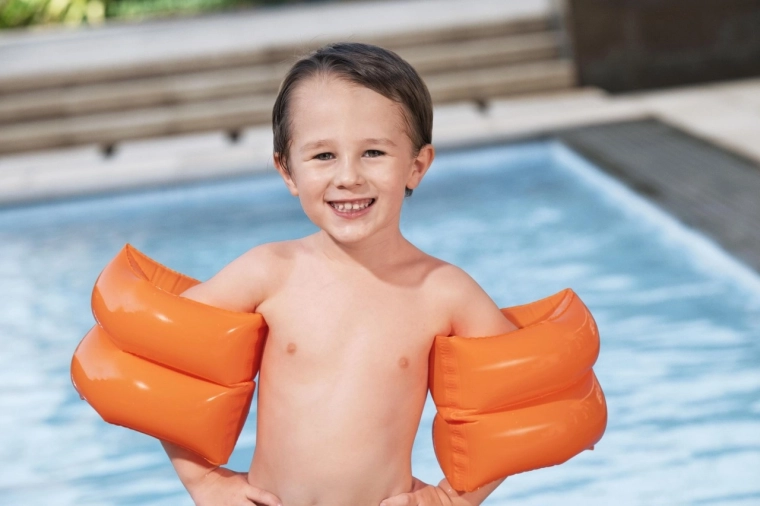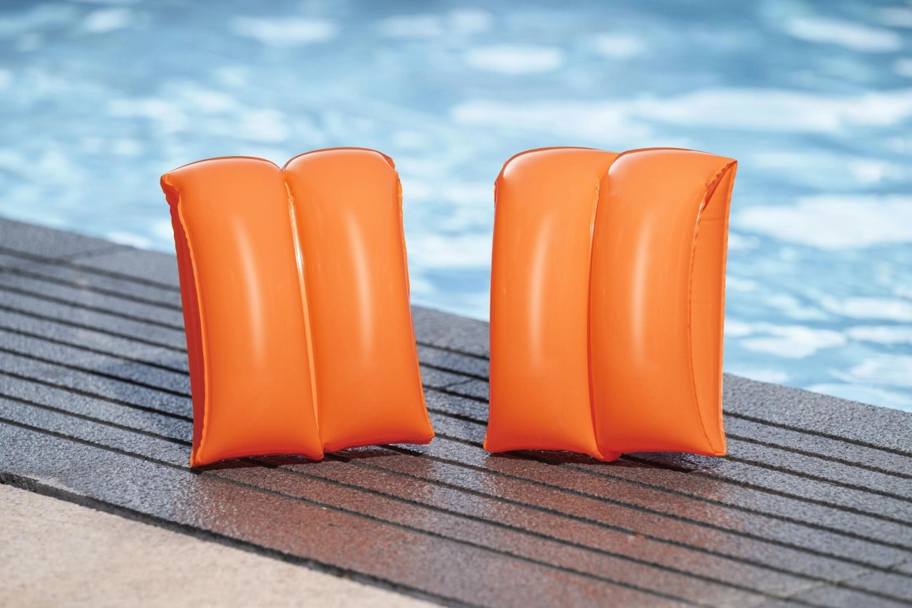 Wspieraj pierwsze kroki w wodzie z dziecięcymi rękawkami BESTWAY. Intensywna pomarańczowa barwa gwarantuje świetną widoczność, a podwójne komory zwiększają stabilność i wyporność. Rękawki są idealne do basenu, jeziora i morza, pomagając dzieciom budować pewność siebie podczas nauki pływania.