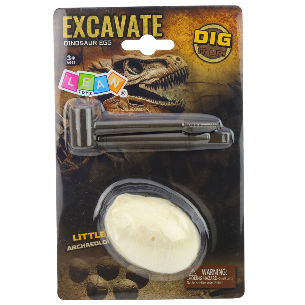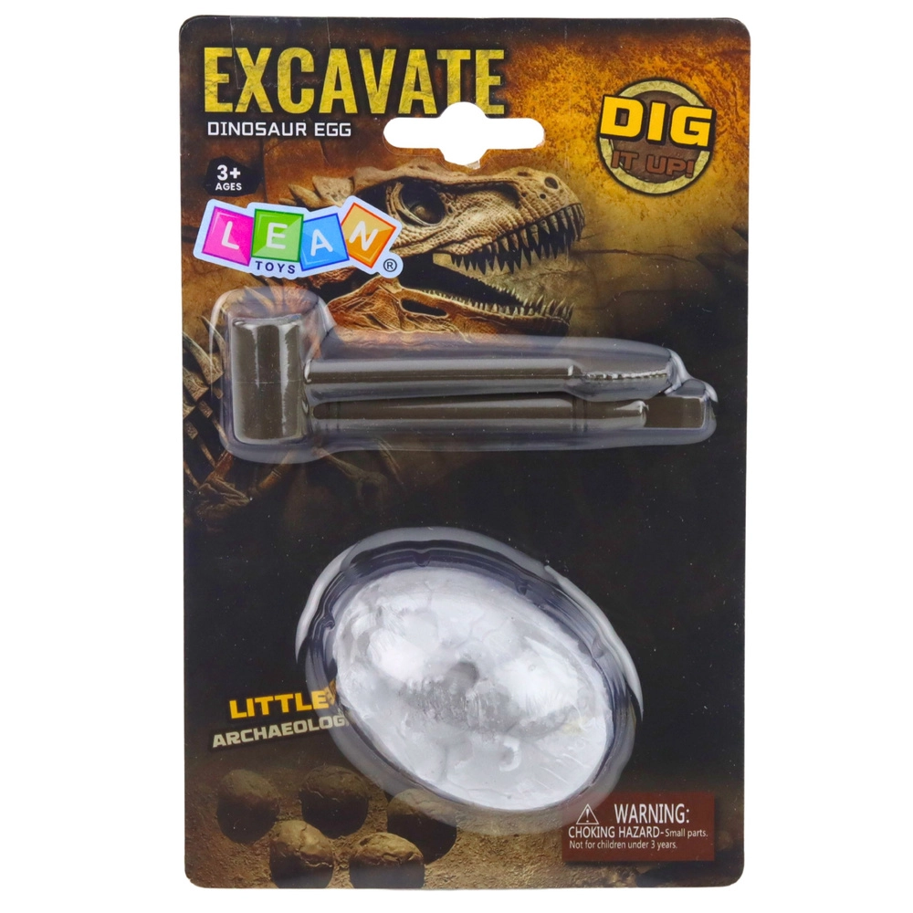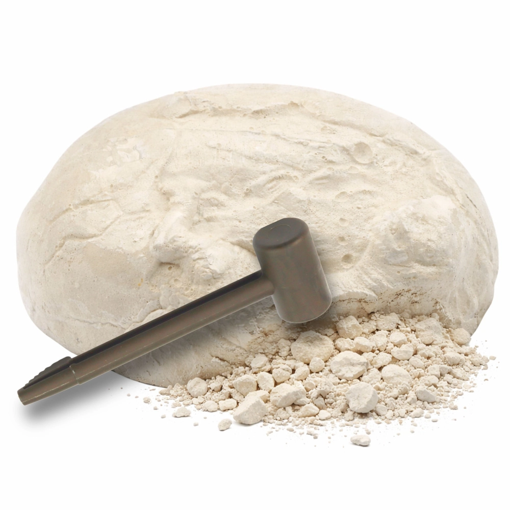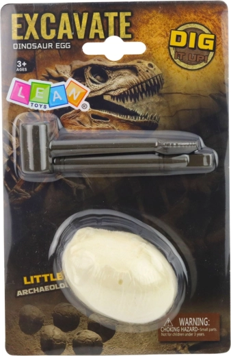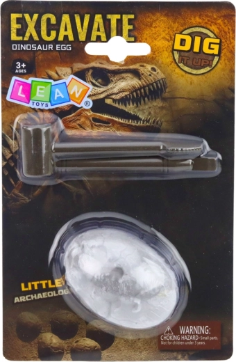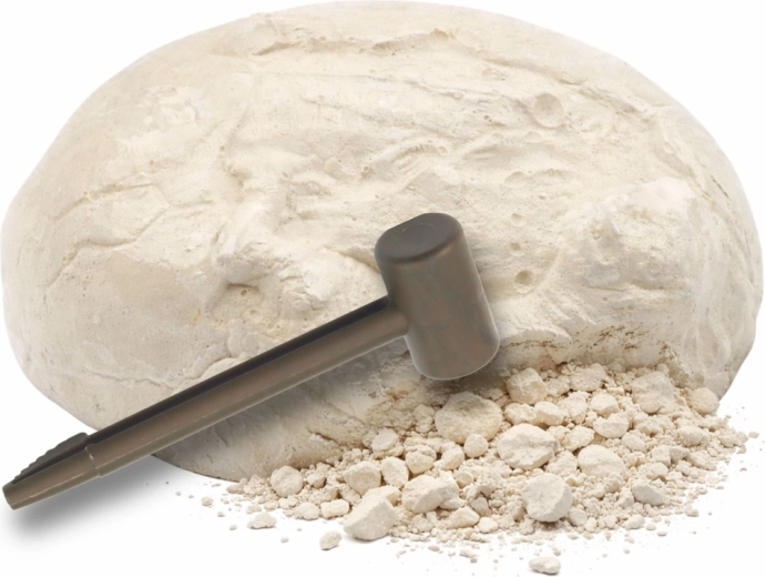 Ten interaktywny zestaw archeologiczny pozwoli dzieciom stać się małymi paleontologami. Zadaniem jest stopniowe odkrywanie figurki dinozaura ukrytej w gipsowym jaju za pomocą dołączonych dłutka i młoteczka. Wystarczy zanurzyć jajo na kilka minut, pozwolić masie zmięknąć, a następnie ostrożnie usuwać warstwy „skały”.