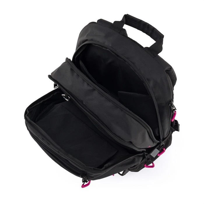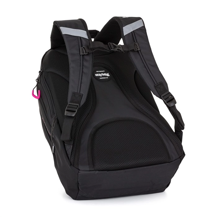 Wyściełane, regulowane szelki, ergonomicznie ukształtowane plecy oraz pas piersiowy równomiernie rozkładają obciążenie i uprzyjemniają noszenie do szkoły i w czasie wolnym.