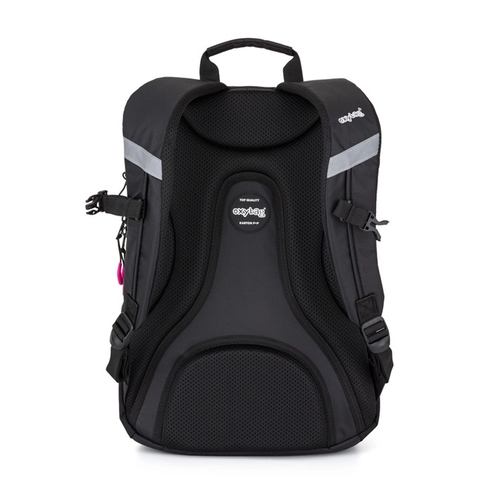Stylowy plecak szkolny i na czas wolny OXYBAG w zestawie z piórnikiem oferuje ergonomicznie ukształtowane plecy, wyściełane regulowane szelki z pasem piersiowym oraz dużo miejsca do szkoły i na co dzień. Dwie komory główne, usztywniona kieszeń na laptop, boczna kieszeń na butelkę i liczne elementy odblaskowe zapewniają wygodę, porządek i bezpieczeństwo. Pojemność 24 l, waga 870 g, udźwig 8 kg.