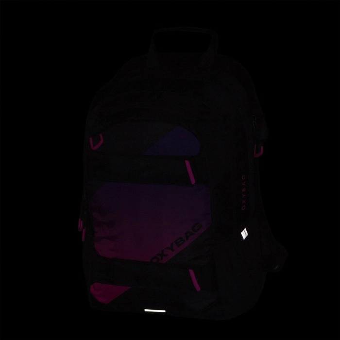 Elementy odblaskowe dla lepszej widoczności, boczna kieszeń na butelkę oraz nowoczesny wygląd ombré, który wyróżnia się w szkole i w mieście.