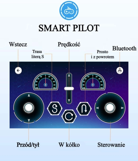Steruj modelem pilotem 2,4 GHz lub przez aplikację Bluetooth z trybami takimi jak wirtualny pilot, żyroskop, programowanie Scratch i rysowanie trasy.
