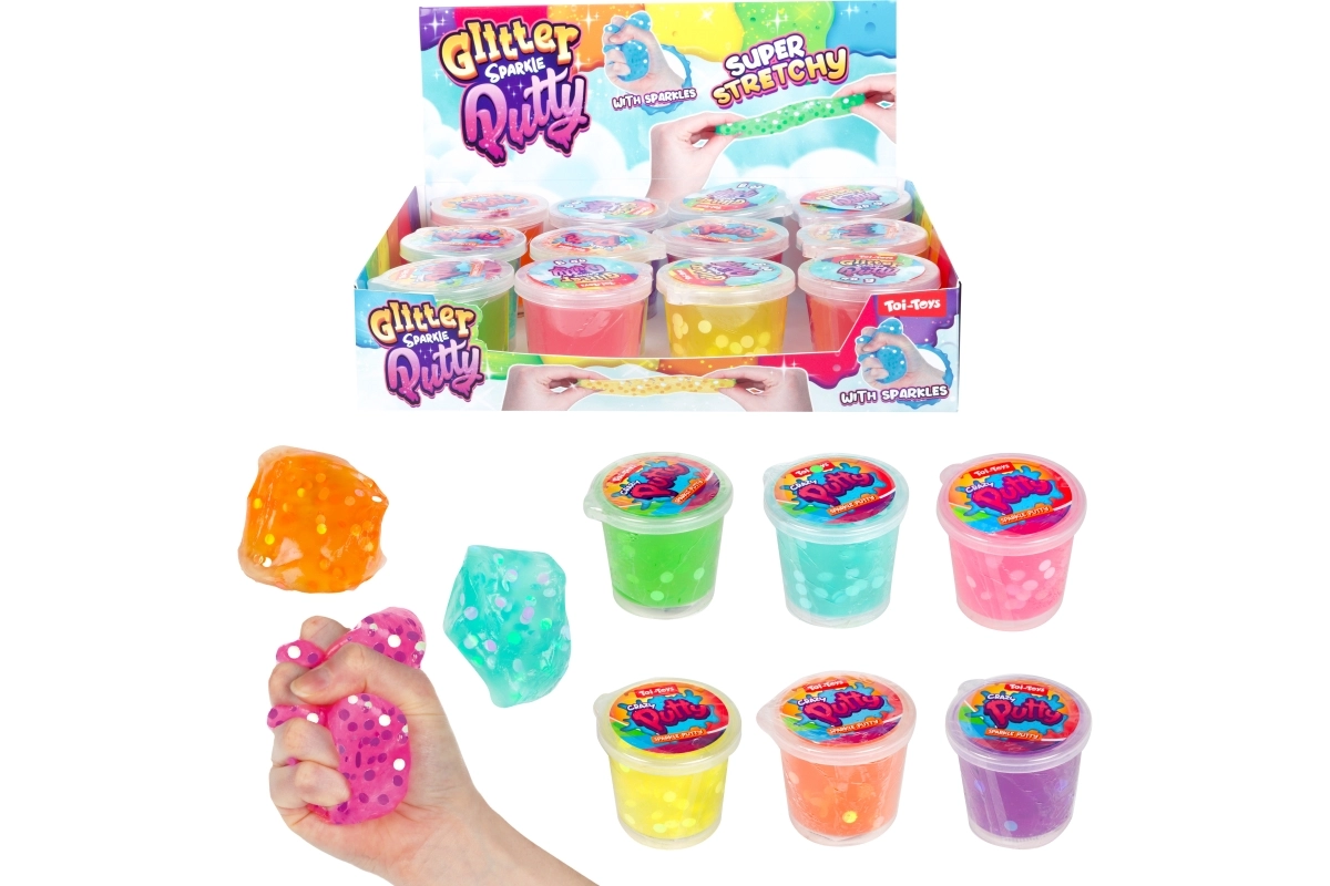 Duże brokatowe drobinki i konfetti nadają glutowi wyrazisty połysk i atrakcyjny wygląd – idealny do kreatywnej i sensorycznej zabawy.