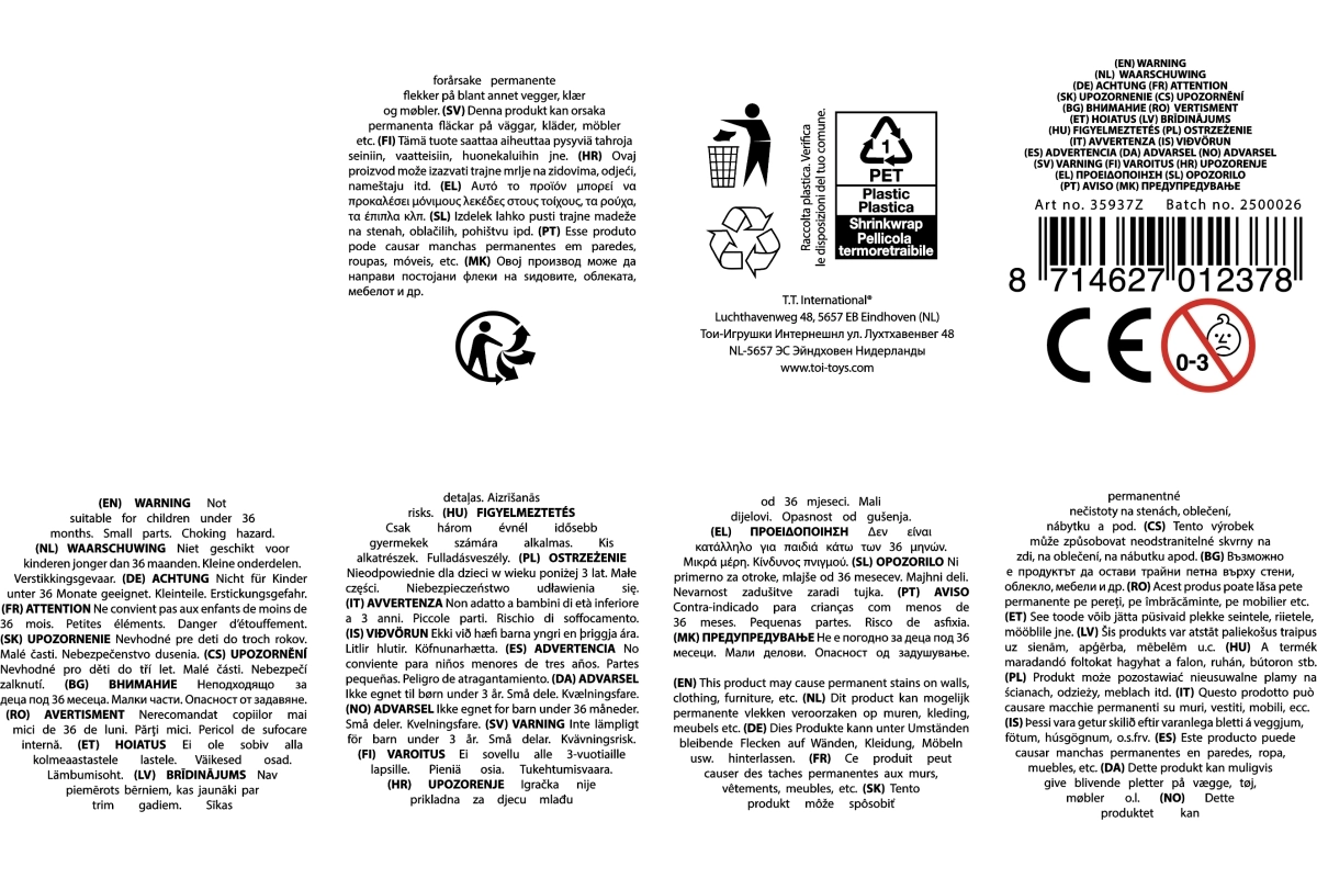 Każdy egzemplarz jest umieszczony w przezroczystym plastikowym kubeczku o kompaktowych wymiarach 6 × 6 cm, który utrzymuje glut świeży i czysty. Dzięki brokatowi i efektowi konfetti wygląda bardzo atrakcyjnie i zachęca do dalszej zabawy. Kolory są dostarczane w różnych odcieniach w zależności od bieżącej dostępności.