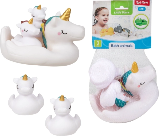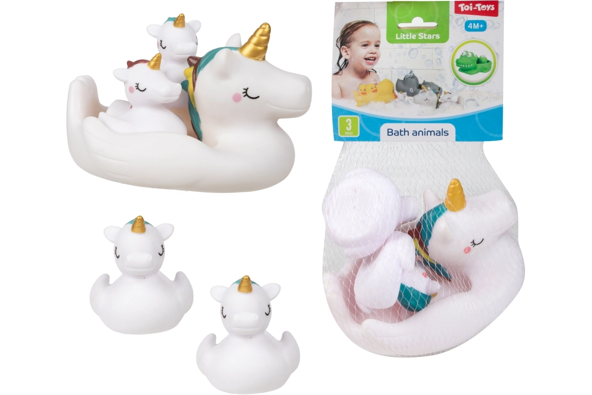 Ten zestaw zwierzątek do wanny zamieni każdą kąpiel w radosną przygodę. Większe pływające zwierzątko (ok. 17 × 10 cm) służy jako „łódka”, która przewiezie dwa mniejsze zwierzątka (ok. 7 cm). Miękki materiał jest przyjemny w dotyku i bezpieczny dla małych dzieci, a intensywne kolory wspierają stymulację wzroku oraz rozwój małej motoryki.