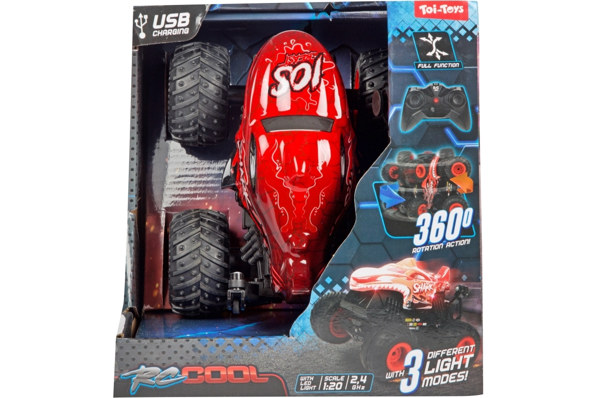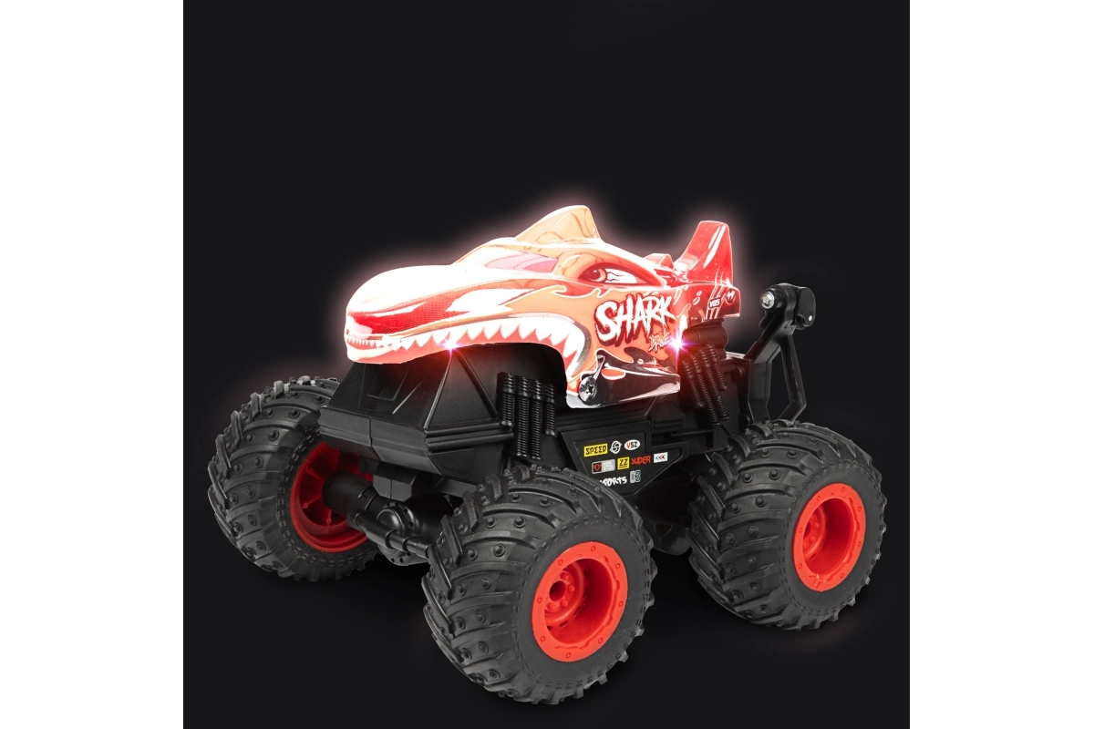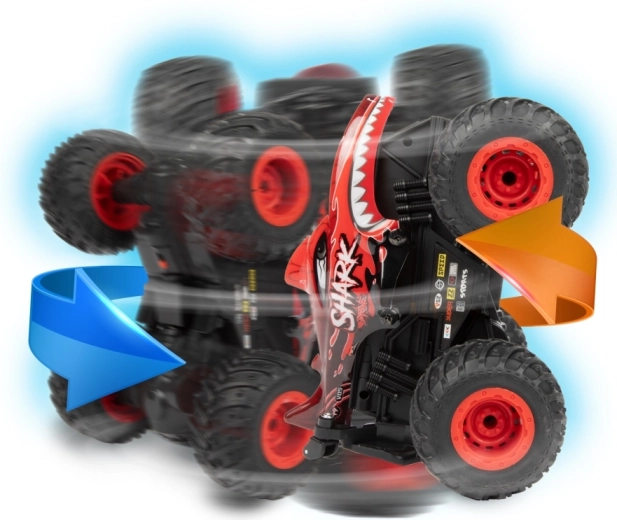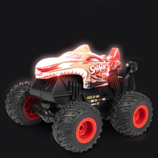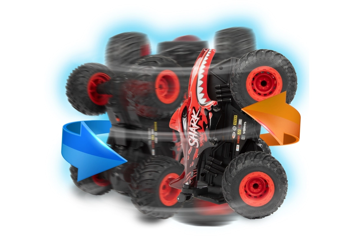 Dwa wyraziste motywy (DINO lub rekin) oraz duże terenowe koła dla lepszej przyczepności i stabilności podczas jazdy i obrotów.