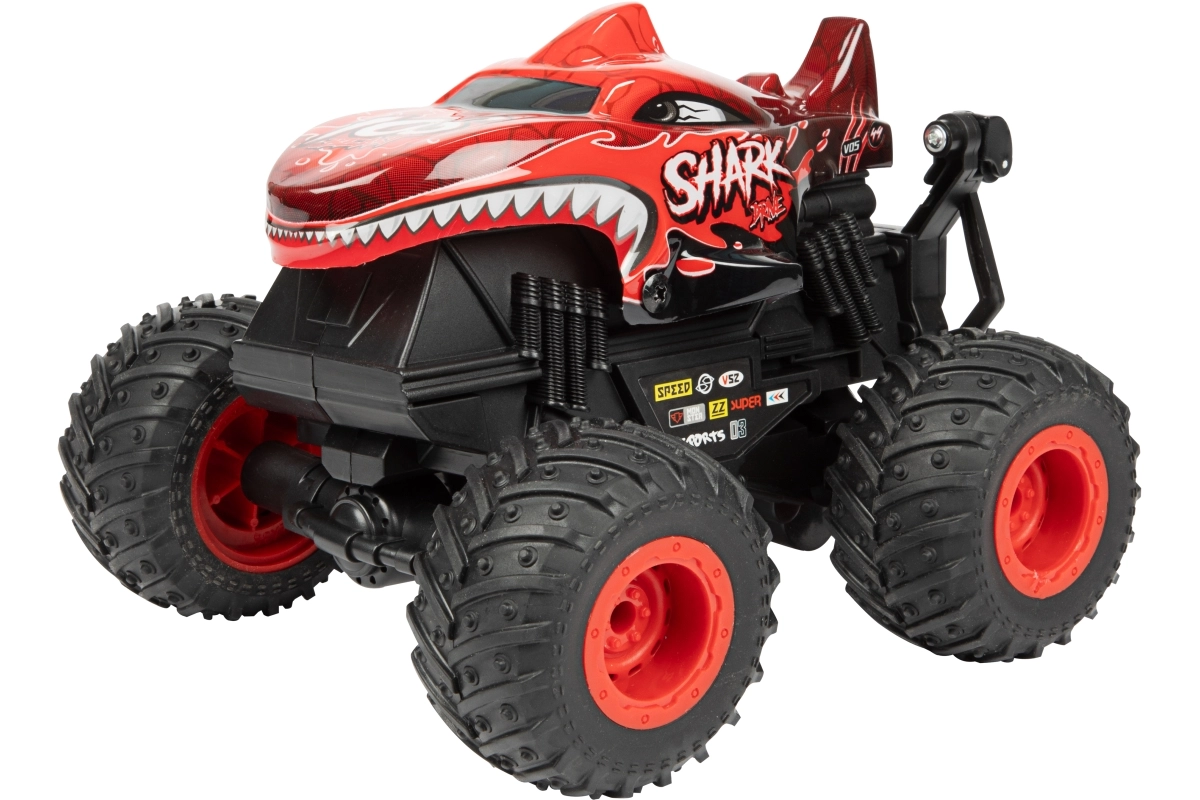 Monster truck wykonany jest z wytrzymałego plastiku, ma duże profilowane koła i widoczne zawieszenie zapewniające lepszą stabilność na nierównym podłożu. Dwa atrakcyjne warianty (dinozaur lub rekin) wysyłamy w zależności od dostępności magazynowej – każdy wyróżnia się wyrazistym designem i solidnym wykonaniem.