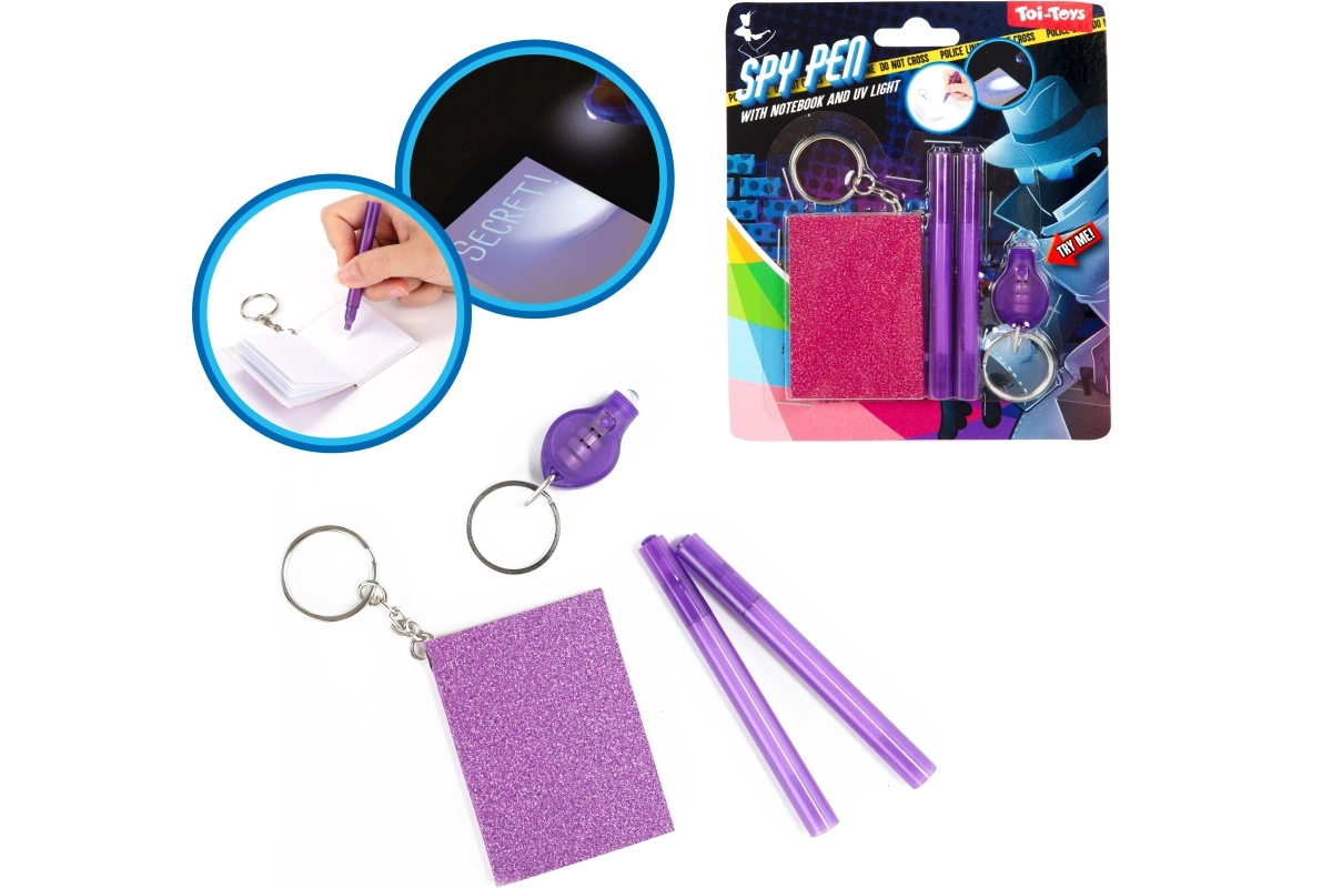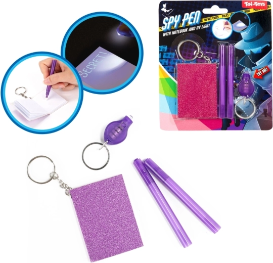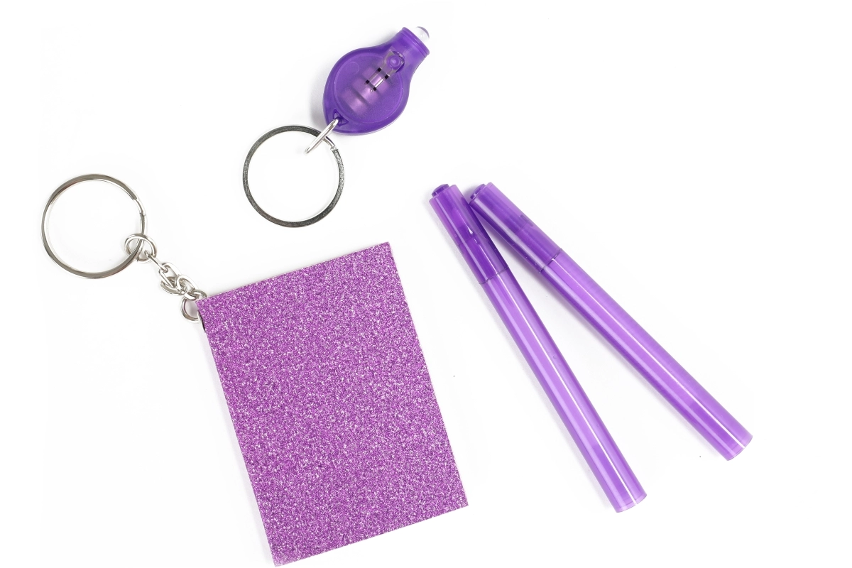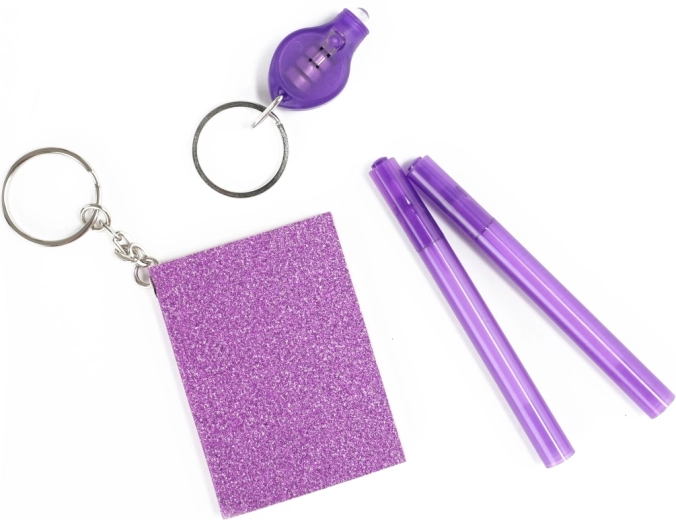 - Pamiętnik z klipsem, 2 magiczne długopisy, latarka UV