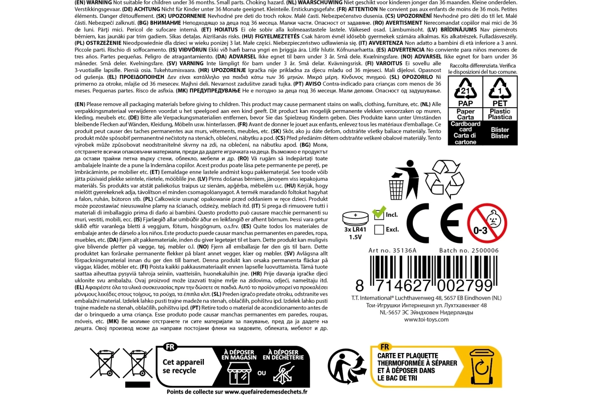 Cały zestaw wykonany jest z wytrzymałego plastiku i jest gotowy do natychmiastowego użycia – 3× bateria AG13 znajduje się już w opakowaniu. Świetny prezent dla małych szpiegów, który wspiera kreatywność, wyobraźnię i motorykę małą.