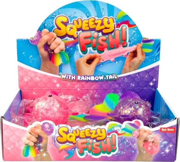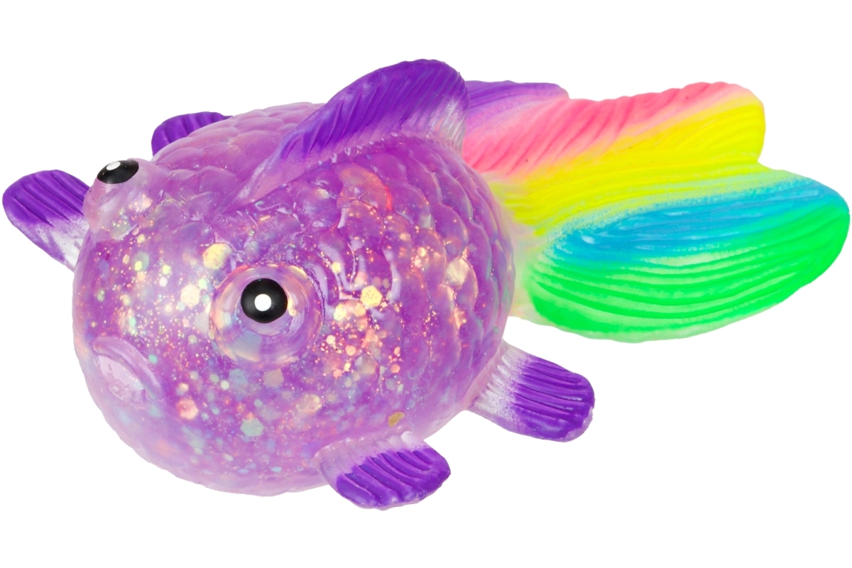 Odkryj kojące wrażenie ściskania z uroczą błyszczącą rybką, która ma miękkie żelowe ciało, przezroczysty efekt z brokatem oraz kolorową płetwę ogonową. Dzięki kompaktowemu rozmiarowi 12×7×4,5 cm wygodnie mieści się w dłoni i jest idealna na chwile wyciszenia w domu, w szkole i w biurze.