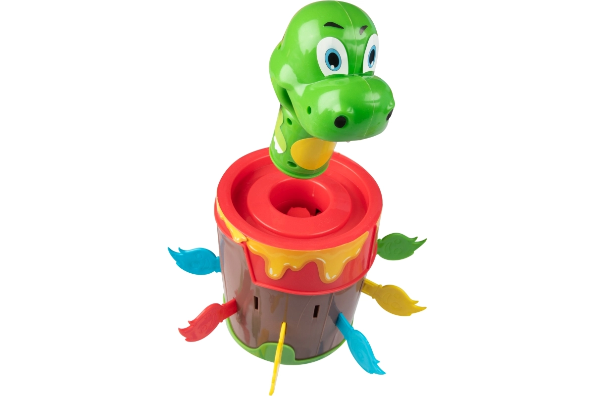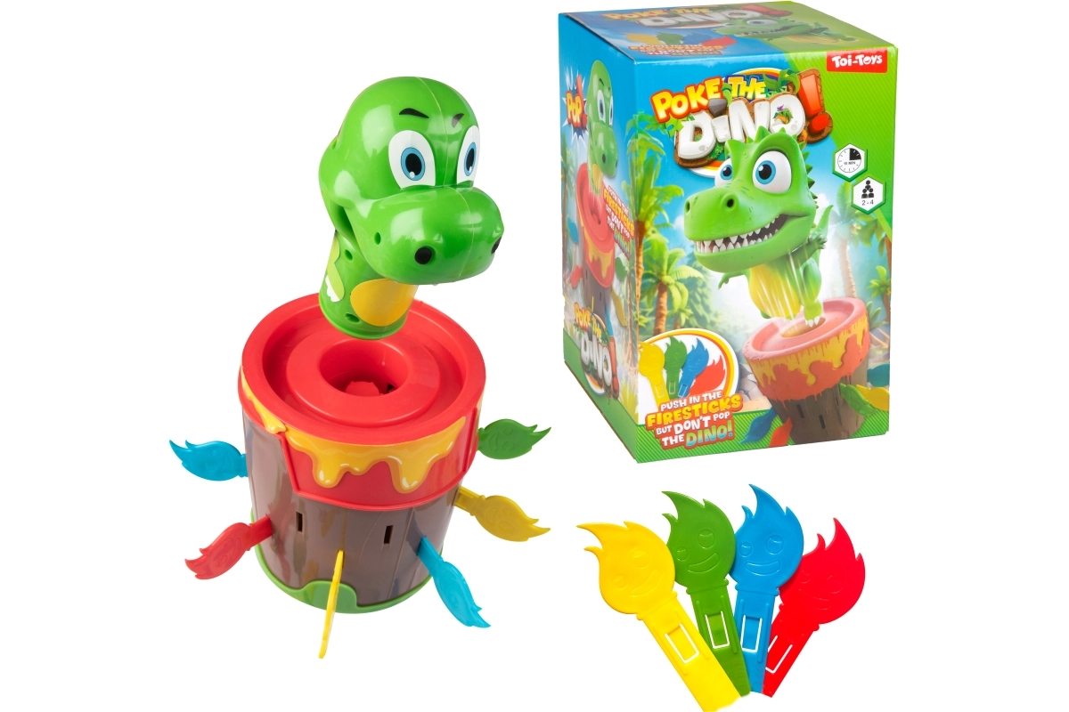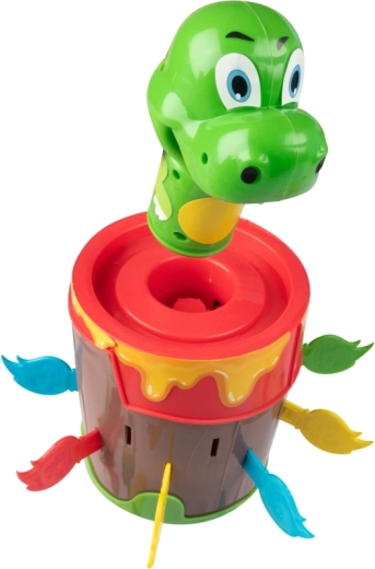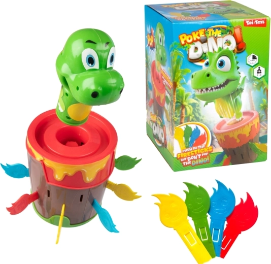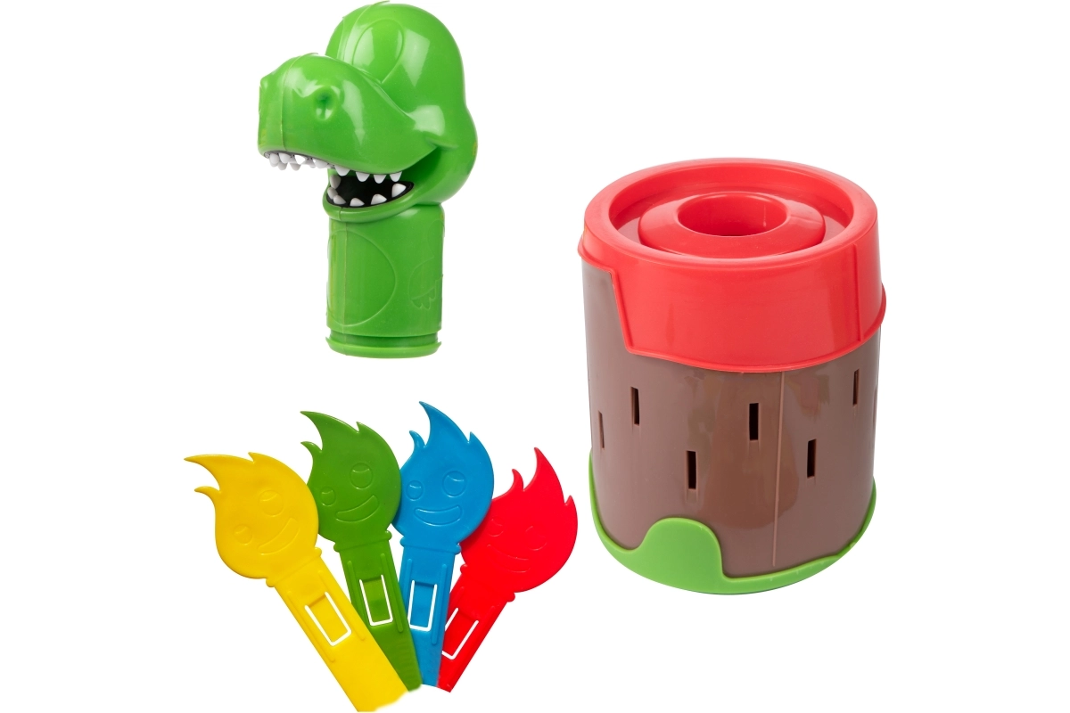 Wsuwaj ogniste patyczki do beczki i czekaj, kiedy dinozaur wyskoczy. Prosty mechanizm bez baterii zapewnia niezawodną i wciągającą zabawę dla całej rodziny.
