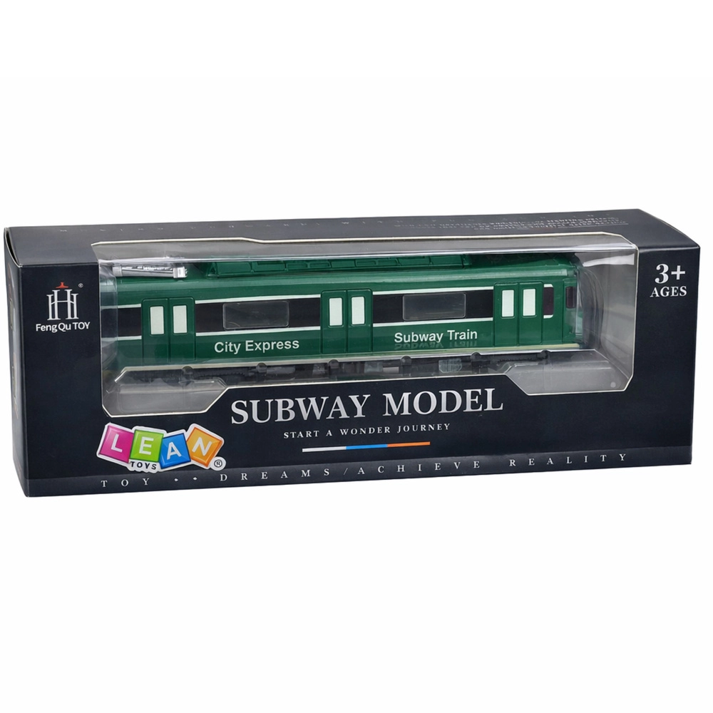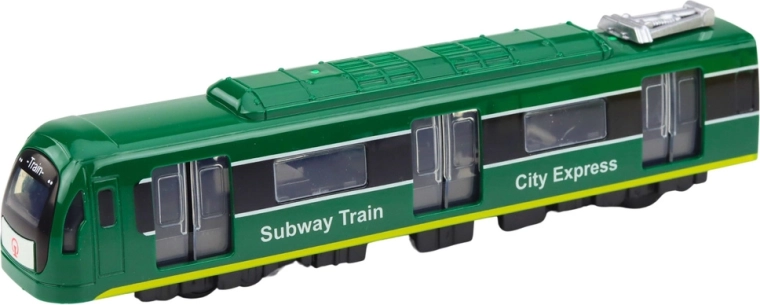 Realistyczny zielony model metra CITY EXPRESS ucieszy małych fanów transportu miejskiego. Oferuje efekty świetlne i dźwiękowe, otwierane drzwi sterowane suwakiem na dachu oraz wytrzymałe, plastikowe wykonanie. Kompaktowe wymiary są idealne do zabawy w domu i rozwijają wyobraźnię oraz kreatywność dzieci.
