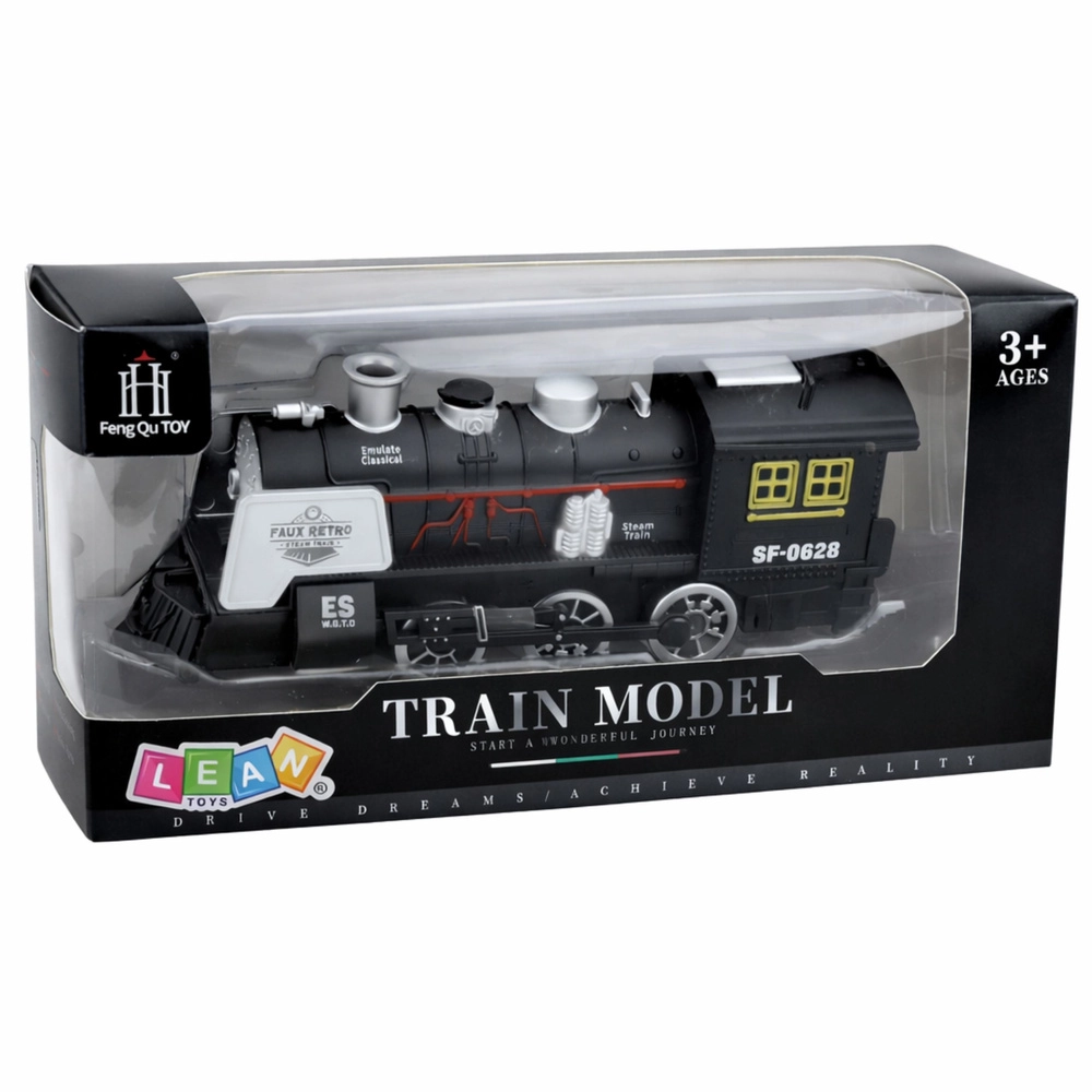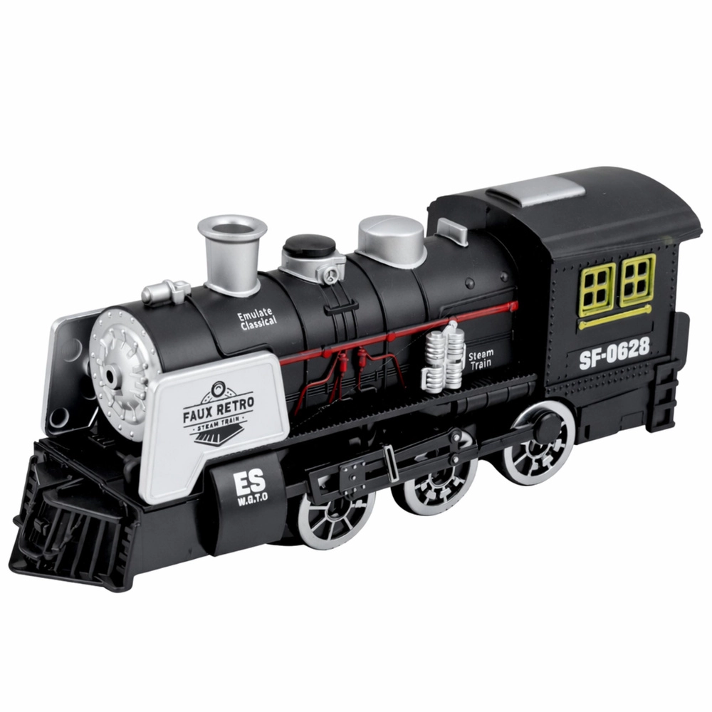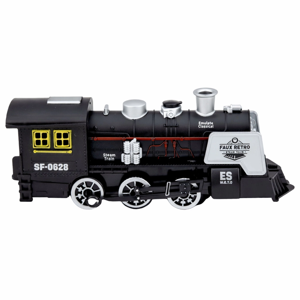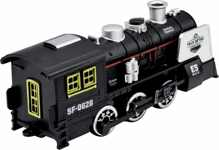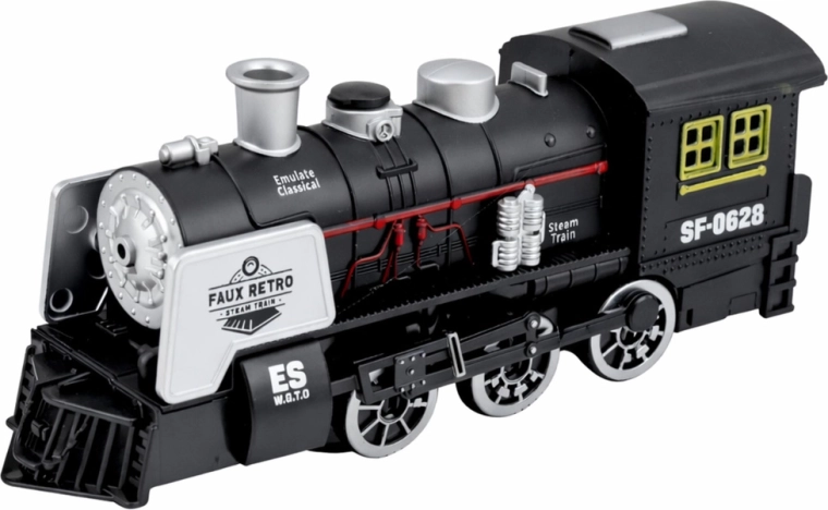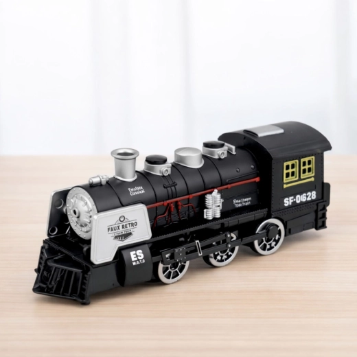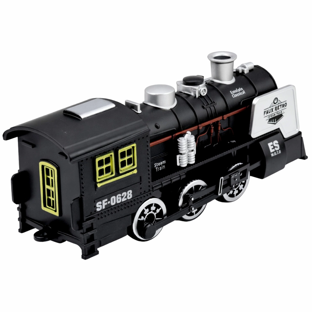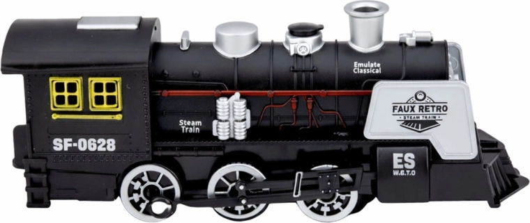 Stylowa czarna lokomotywa parowa inspirowana klasycznymi parowozami zapewnia realistyczną zabawę dla dzieci. Oferuje efekty dźwiękowe, imitację dymu oraz czujnik przeszkód, który automatycznie zmienia kierunek jazdy. Detale, takie jak wyraziste koła, komin i boczne rury, podkreślają autentyczny design oraz wytrzymałe plastikowe wykonanie.