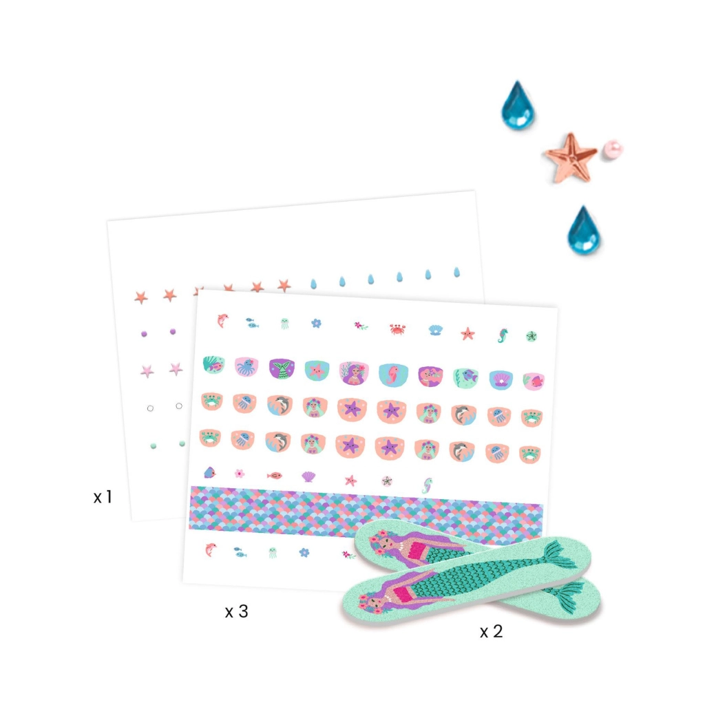 Zaczaruj małe elegantki szybką i zabawną „manicure” bez lakierowania. Naklejki na paznokcie z motywami morskiego świata od DJECO łatwo się aplikują, są delikatne dla dziecięcej skóry i natychmiast zamienią paznokcie w urocze miniobrazki.
