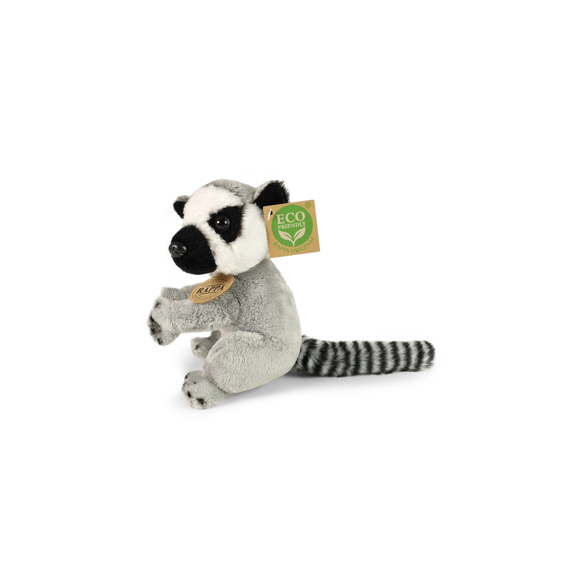 Uroczy pluszowy lemur o wysokości 15 cm z ekskluzywnej kolekcji marki Rappa jest wykonany z miękkich, wysokiej jakości materiałów i wypełniony recyklowanymi włóknami z butelek PET. Dzięki ręcznemu wykonaniu wygląda realistycznie, jest bezpieczny od urodzenia i sprawdzi się jako miły towarzysz oraz dekoracja. Zrównoważony i przyjazny wybór dla małych i dużych miłośników zwierząt.