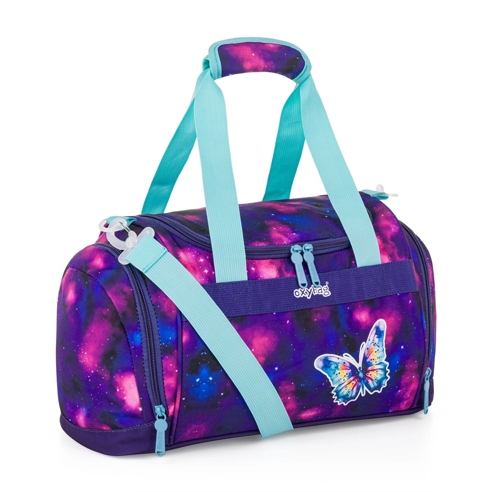 Lekka i praktyczna torba sportowa z motywem Motyla dla małych sportowców. Oferuje oddzielną kieszeń na buty, dwie boczne kieszenie na drobiazgi oraz przestronną komorę główną. Dzięki regulowanemu paskowi dzieci wygodnie poniosą ją na ramieniu lub w ręce. Świetny wybór na piłkę nożną, gimnastykę i inne zajęcia.