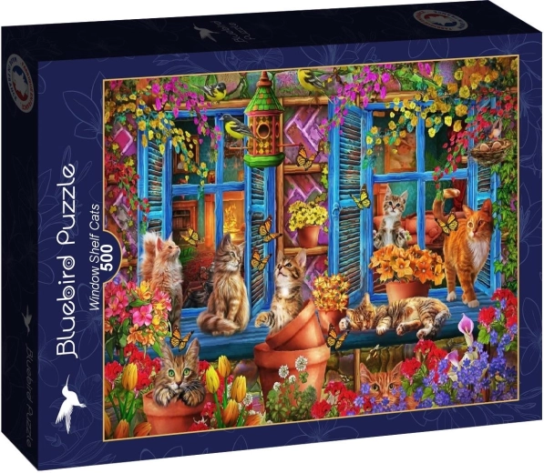 Zrelaksuj się z wysokiej jakości puzzlami marki Bluebird. Układanka Parapet z kotami oferuje 500 elementów, a po złożeniu mierzy około 47,8 × 34,2 cm – idealny rozmiar na spokojne popołudnie i jako dekoracja wnętrza.