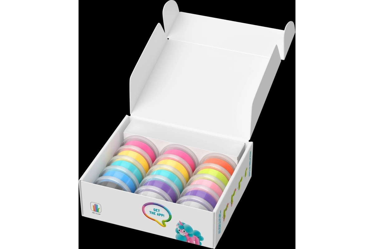 W zestawie znajduje się kod dostępu do aplikacji HEY CLAY. Dzieci śledzą animowane instrukcje i uczą się modelować z pewnością i radością.