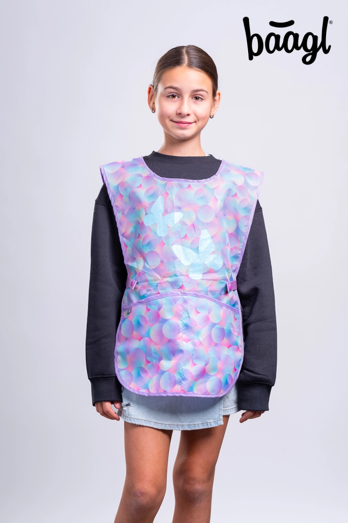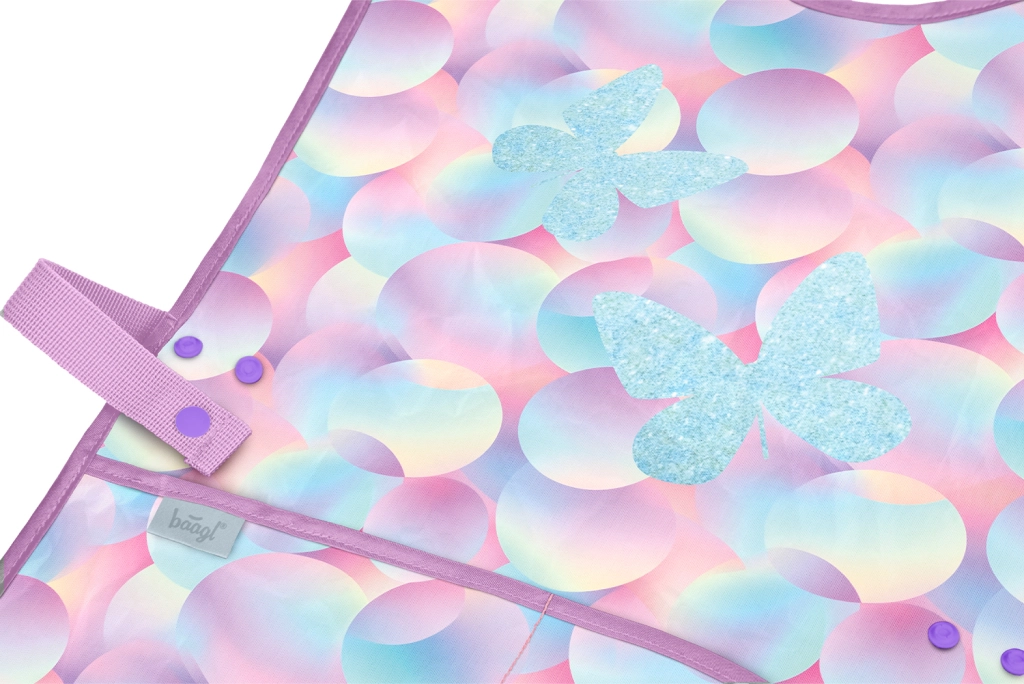 Podaruj dzieciom swobodę tworzenia bez obaw o plamy. Dziecięcy fartuszek BAAGL Candy z delikatnym pastelowym wzorem i motylkami jest idealny na plastykę, zajęcia praktyczne oraz domowe prace twórcze. Wytrzymała, gładka powierzchnia łatwo się wyciera i szybko schnie, więc w kilka chwil jest gotowa do ponownego użycia.