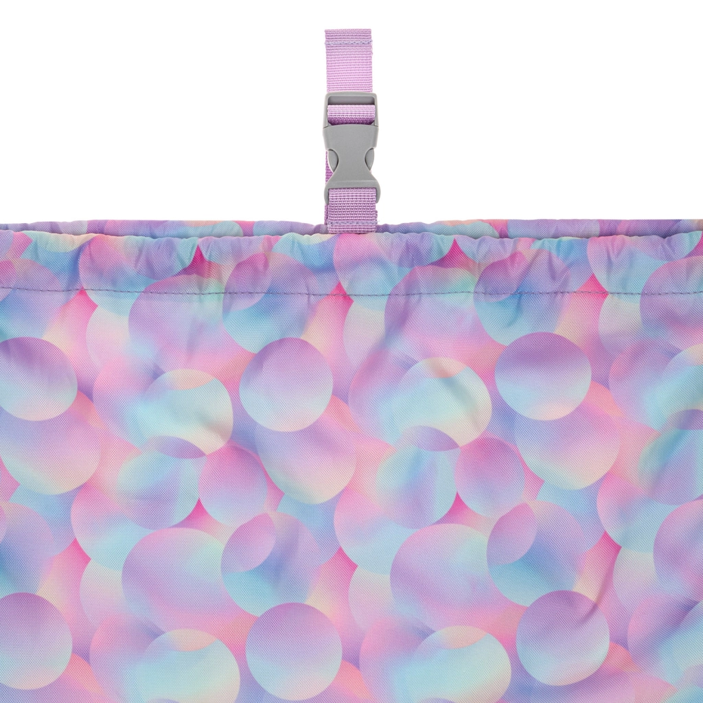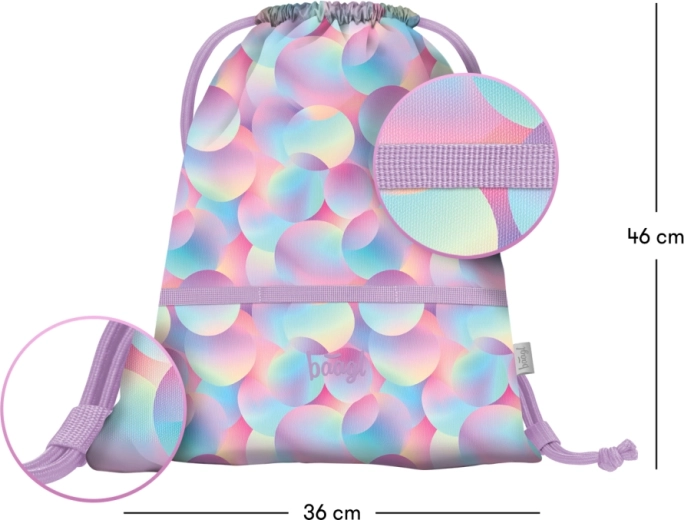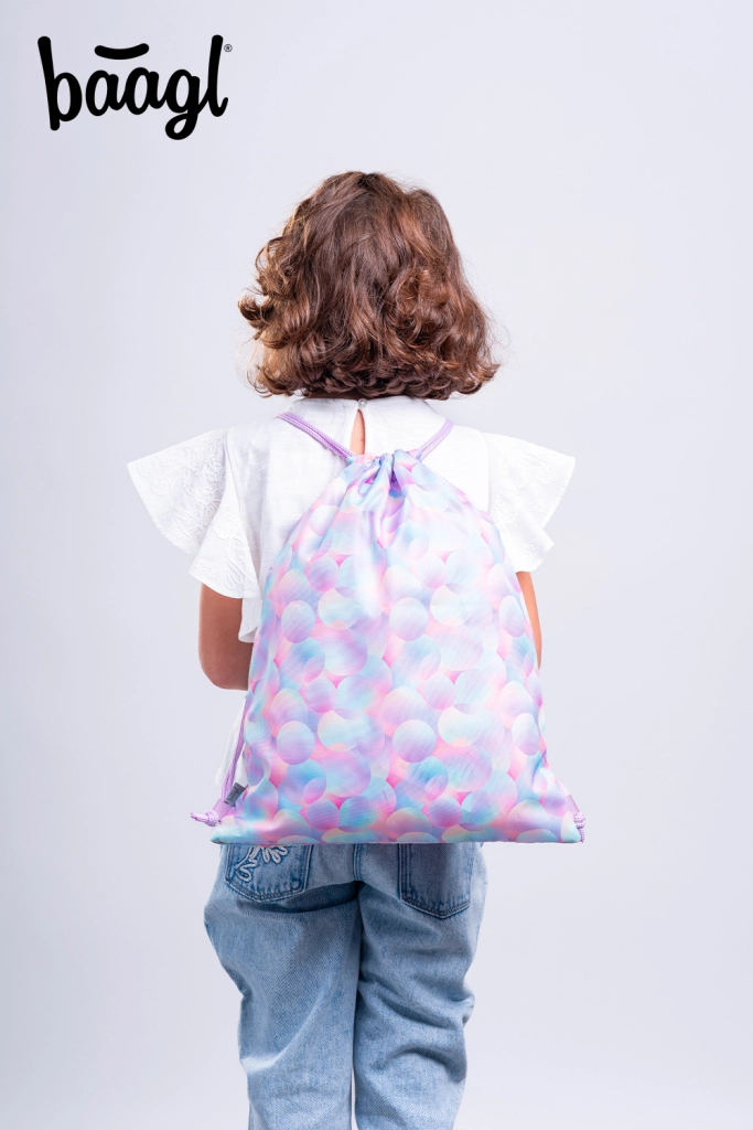 Stylowy worek Baagl Candy z pastelowym wzorem bubble to świetny dodatek dla dzieci i dorosłych. Dzięki wytrzymałej tkaninie znosi codzienne użytkowanie i łatwo się czyści. Podwójne sznurki zapewniają szybkie zamknięcie, a jednocześnie wygodne noszenie jak plecak.
