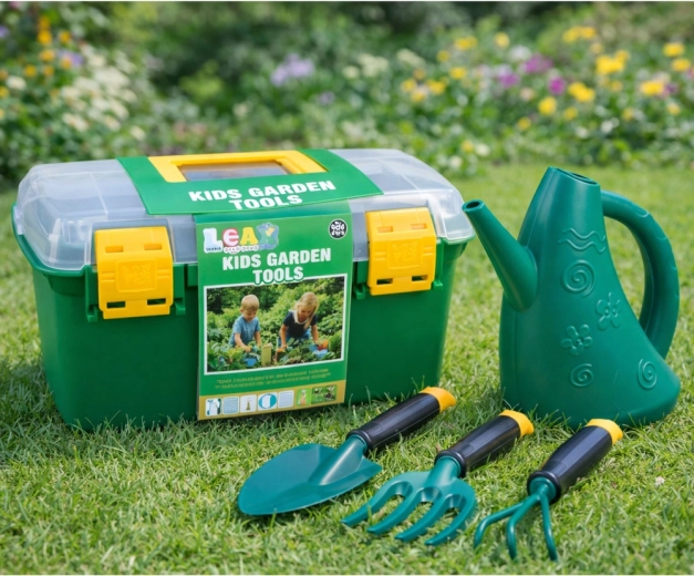 Zestaw jest dostosowany do dzieci – bezpieczne materiały, wygodne uchwyty i rozmiar dla małych rąk wspierają samodzielność i miłość do przyrody.