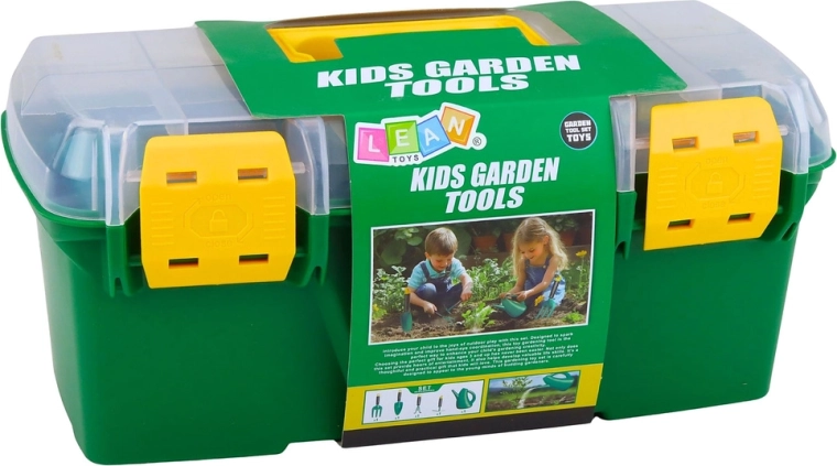 Praktyczna walizka z zamknięciem utrzymuje wszystkie elementy razem i uczy dzieci zamiłowania do porządku. Zestaw jest idealny jako prezent dla małych ogrodników i doskonale nadaje się do zabawy w ogrodzie, na podwórku oraz w piaskownicy.