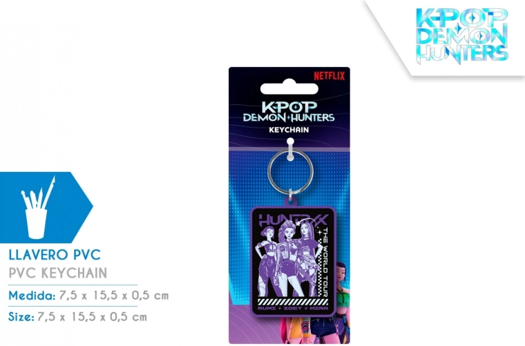 Dodaj swojemu codziennemu stylowi odrobinę fandomu z brelokiem do kluczy K-POP DEMON HUNTERS Huntrix. Połączenie wysokiej jakości PVC i metalowych elementów gwarantuje długą żywotność oraz bezpieczne mocowanie do Twoich rzeczy.