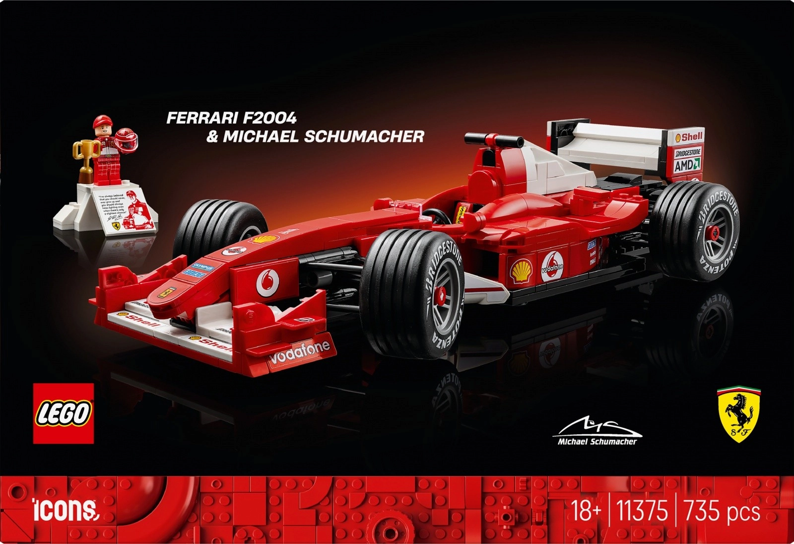 Zbuduj ikonę prędkości: Ferrari F2004, samochód, którym Michael Schumacher zdominował sezon 2004. Zestaw zawiera 735 elementów i oferuje angażujące budowanie oraz reprezentacyjny eksponat na wystawę. Model wyróżnia działające kierowanie, szczegółowy kokpit i wiernie odwzorowany silnik V10, a całość umieszczona jest na stylowej podstawce z drukowanymi statystykami pojazdu.