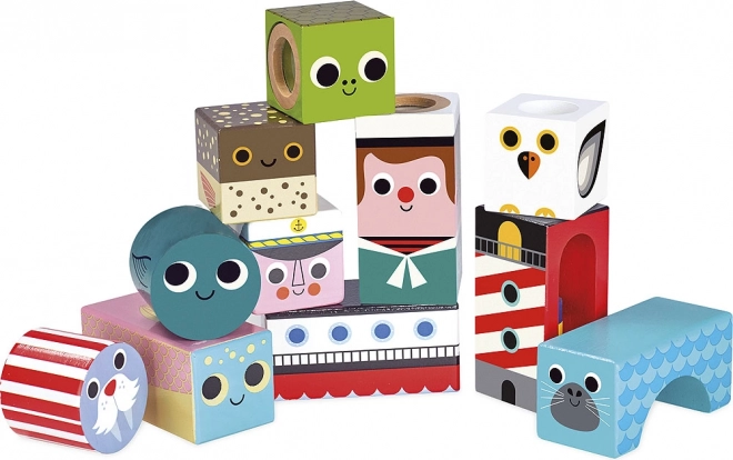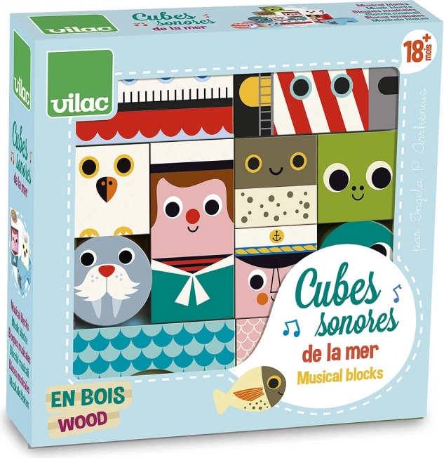 Sensoryczne drewniane klocki z morskimi motywami przynoszą dzieciom radość z odkrywania kształtów, kolorów i dźwięków. Podczas potrząsania i budowania dzieci ćwiczą chwyt, koordynację i koncentrację, a różne elementy dźwiękowe wspierają ich słuch. Ilustracje Ingeli P. Arrhenius nadają zestawowi wyjątkowy retro charakter i figlarny styl.