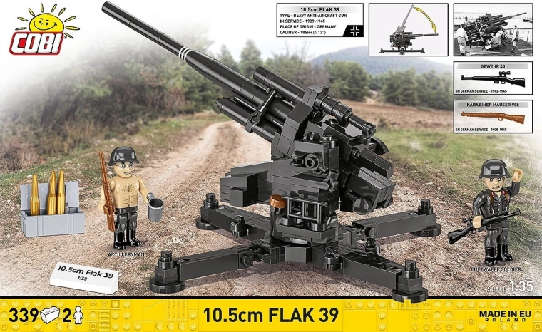 Model 10,5 cm Flak 39 wprowadza do świata klocków realizm ciężkiej artylerii przeciwlotniczej z okresu II wojny światowej. Solidna konstrukcja, przemyślane mechanizmy i historyczna autentyczność sprawiają, że to idealny wybór dla kolekcjonerów i pasjonatów budowania. W skali 1:35 doskonale prezentuje się jako samodzielna dominanta gabloty lub element większej dioramy.