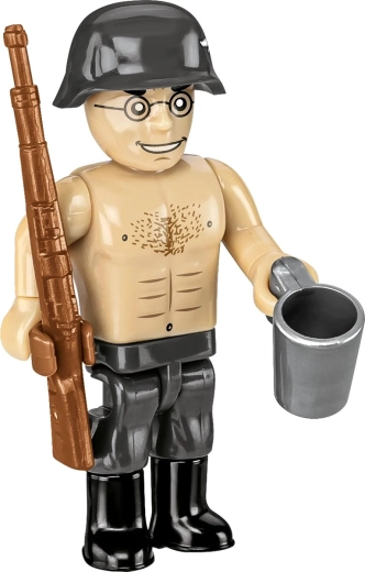 Dzięki ruchomym elementom – regulowanemu kątowi podniesienia lufy i obrotowej podstawie – model wygląda wiarygodnie zarówno podczas zabawy, jak i w statycznej ekspozycji. Dwie figurki artylerzystów z wyposażeniem (karabinki, kubek, skrzynia z amunicją) dodają scenie życia i narracji. W 100% nadruki bez naklejek gwarantują trwałość i czysty wygląd nawet po długich godzinach użytkowania.