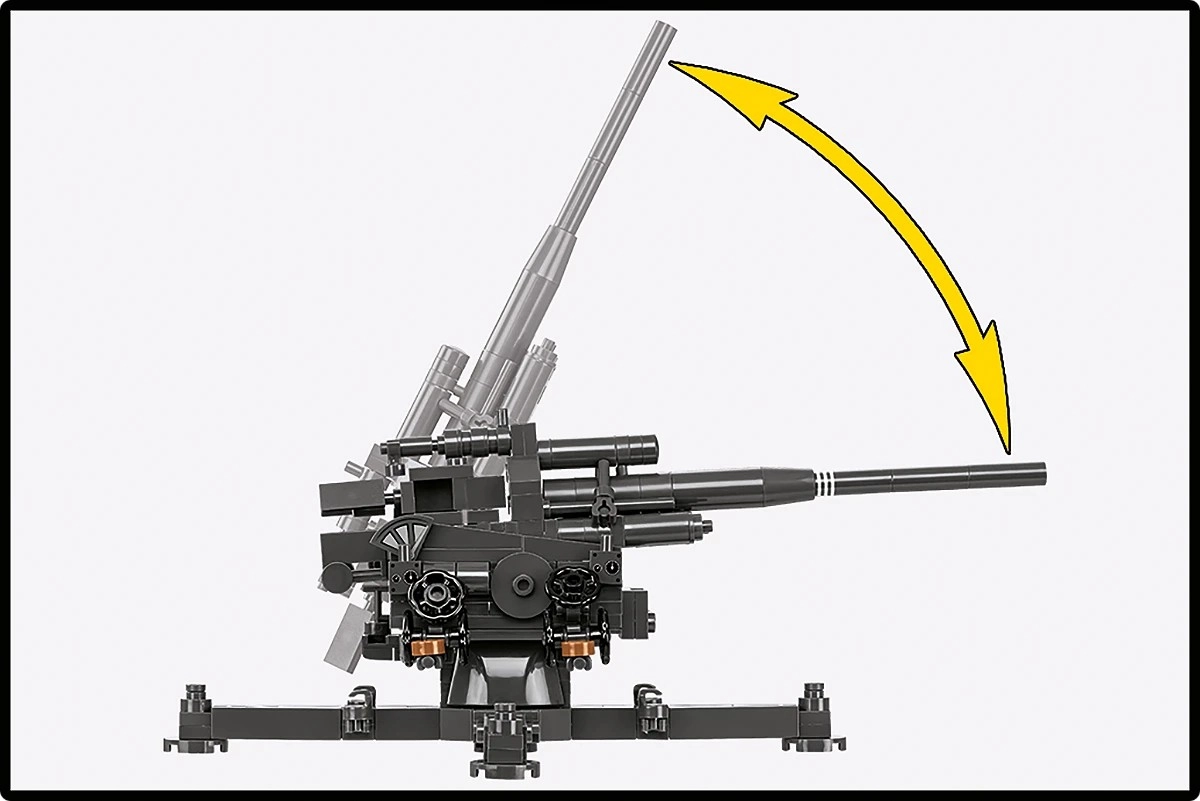 Regulowany kąt podniesienia lufy, obrotowa podstawa i szczegółowe elementy sterujące nadają modelowi autentyczności i umożliwiają dynamiczne pozy zarówno do zabawy, jak i fotografowania.